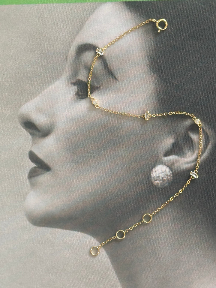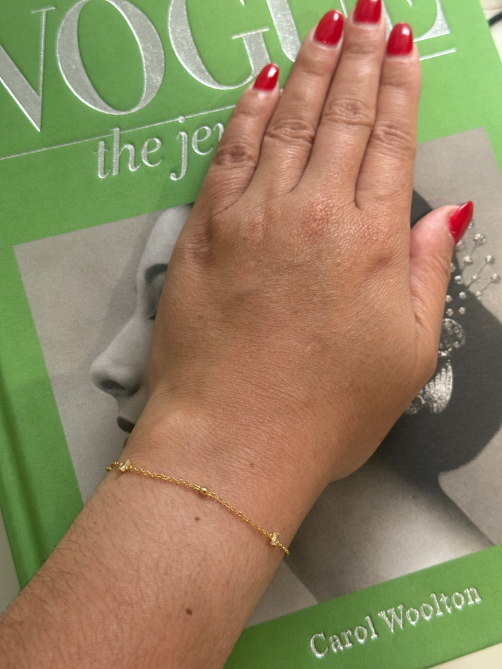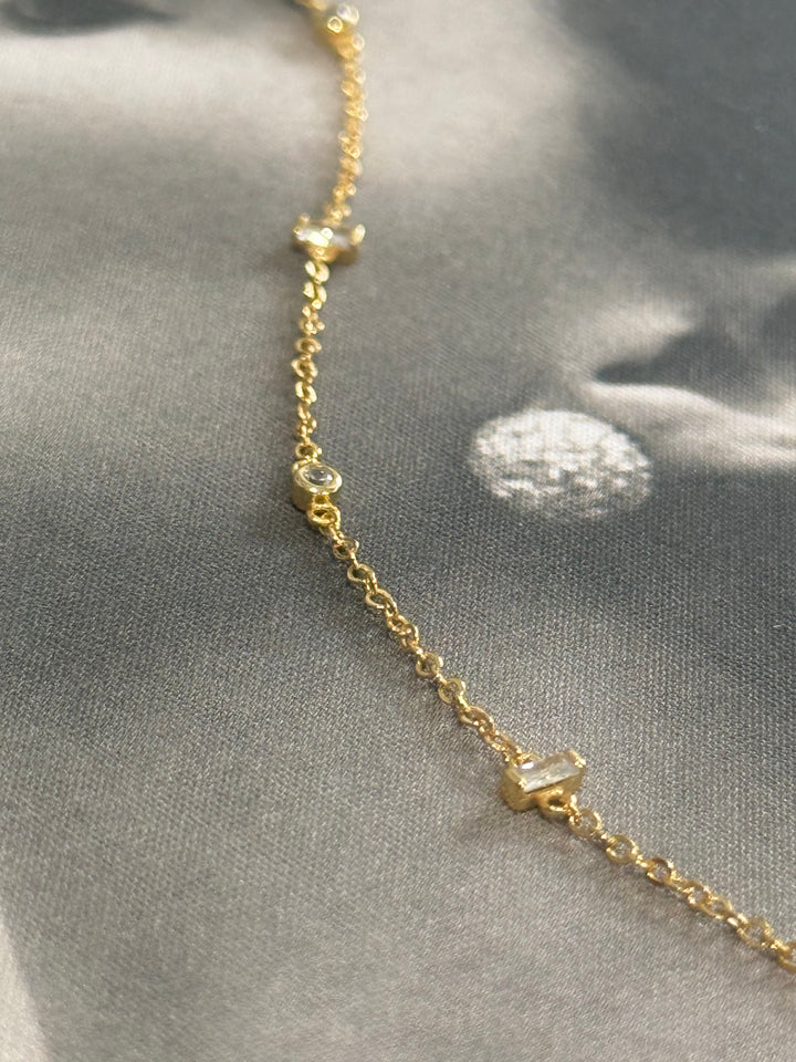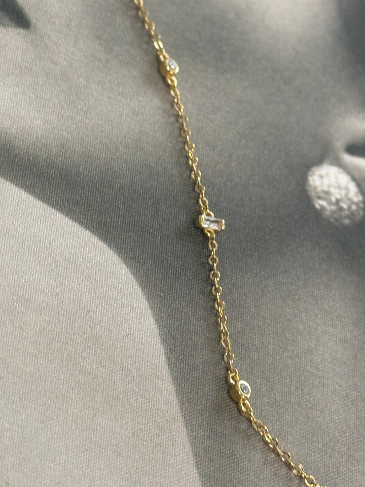 Supremely dainty semi-fine chain bracelet with solo baguette and diamante cz.