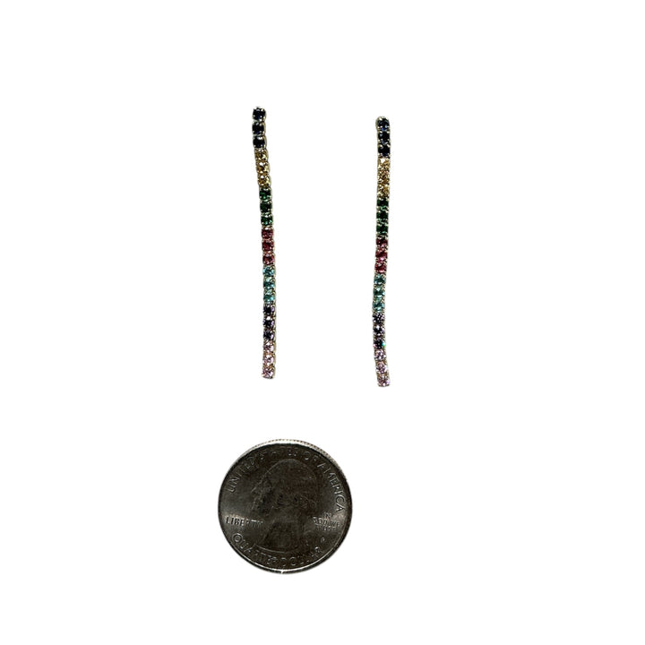 925 Gold Plated Cascading Rainbow Rhinestone Earrings