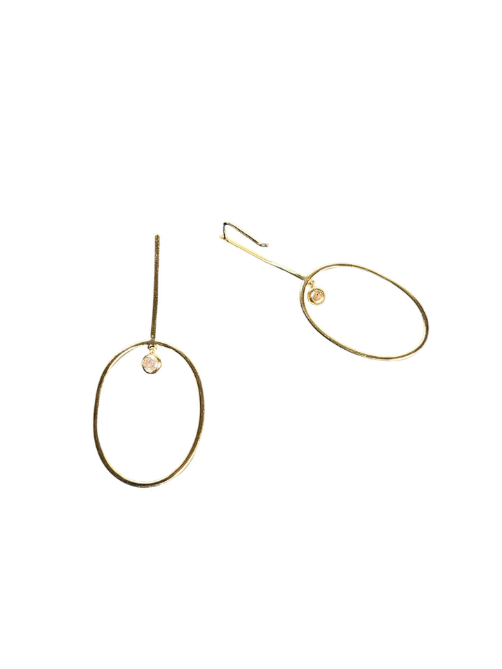 925 Sterling Silver Drop Line Oval Dangling Solo CZ Post Drop Earrings