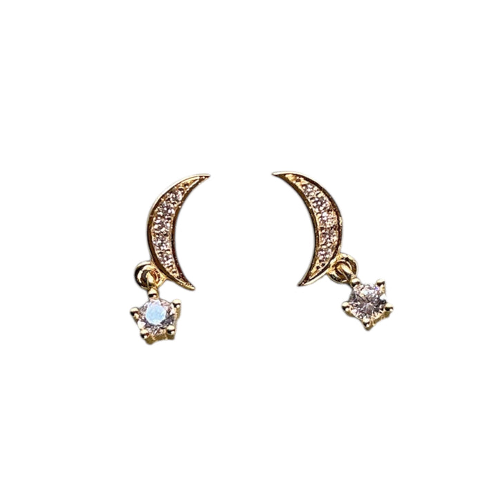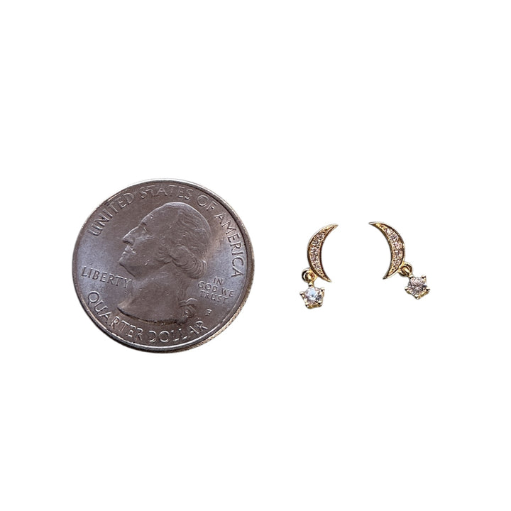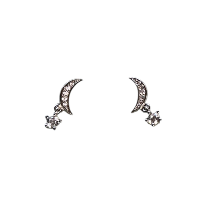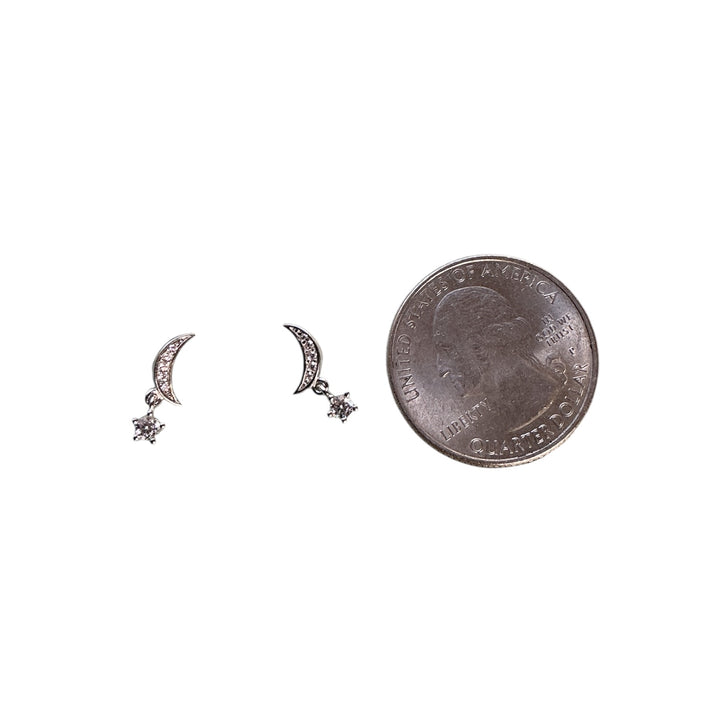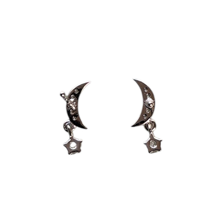 925 Sterling Silver Moon Dangling Star CZ Post Stud Silver Earrings