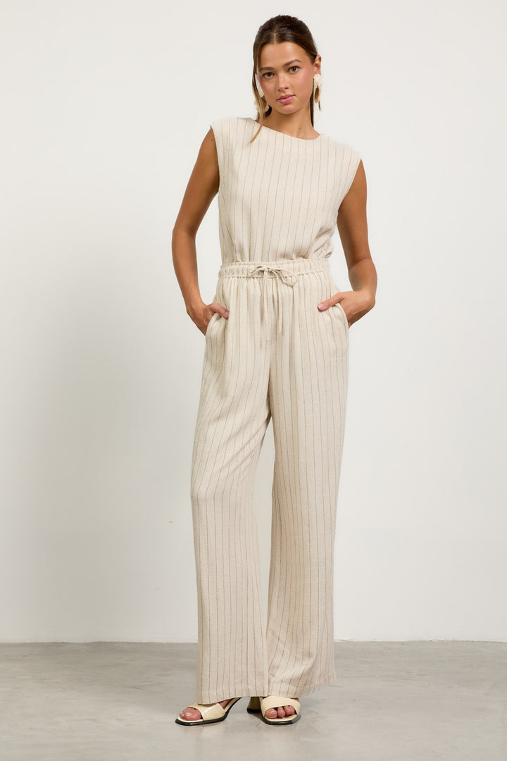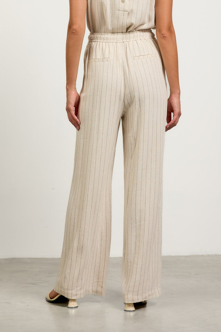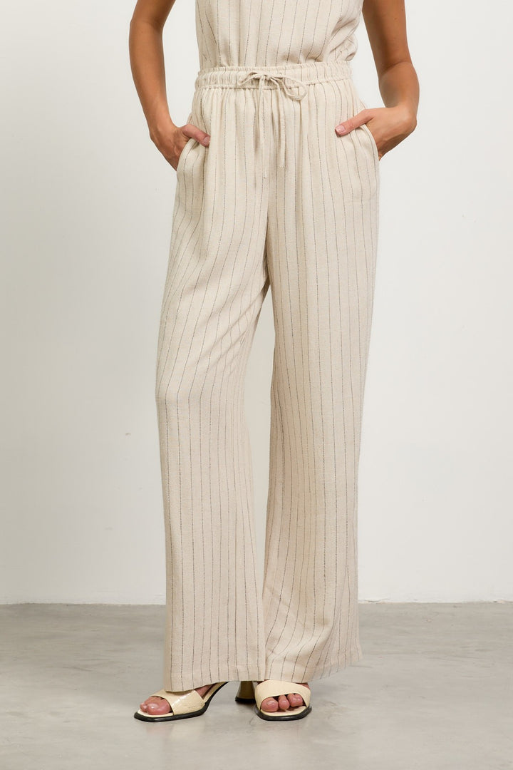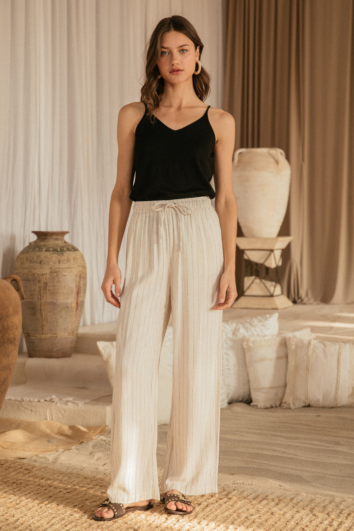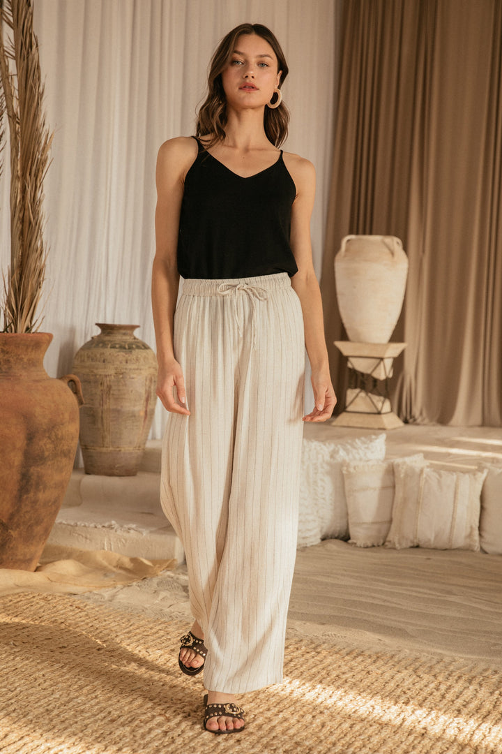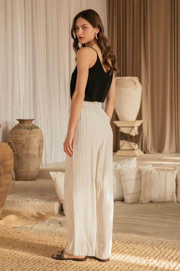 Billie Linen Stripe Pull On Wide Leg Pants - Natural/Black
