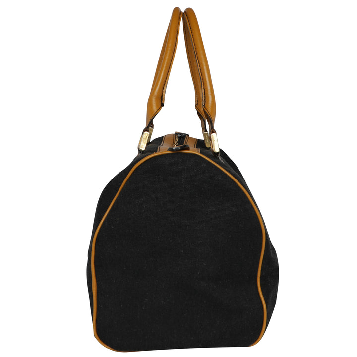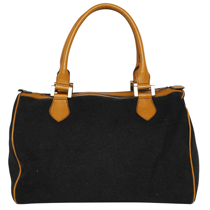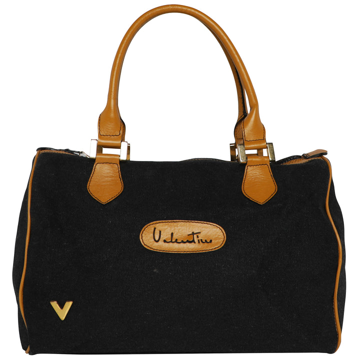 Black Valentino Canvas Leather Top Handle Bowler Duffle Bag