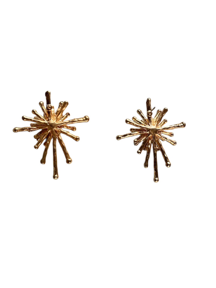 Elegant and artful Freeform starburst earrings crafted from high quality brass base metal with an 18kt gold plating.