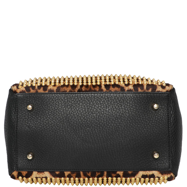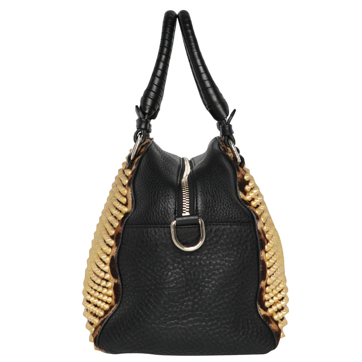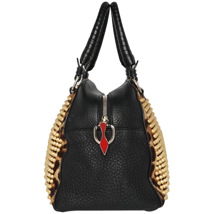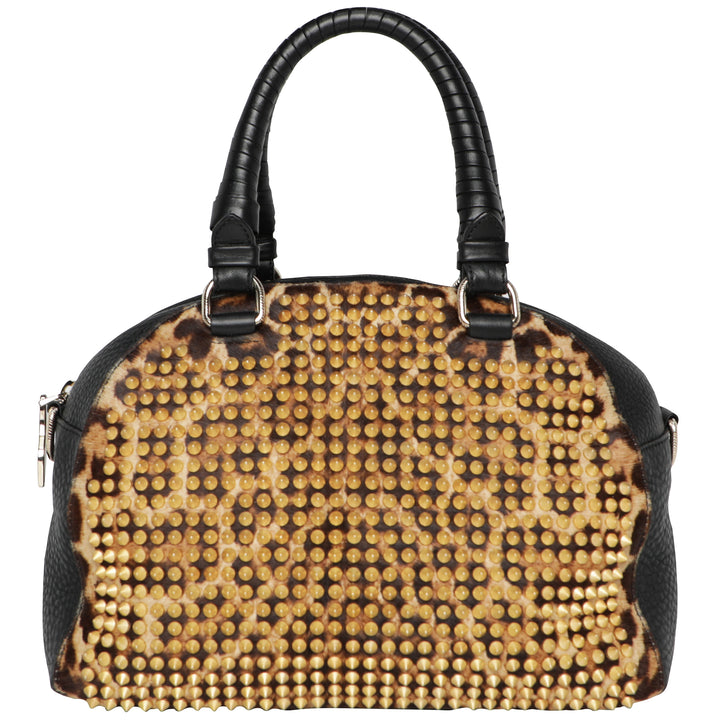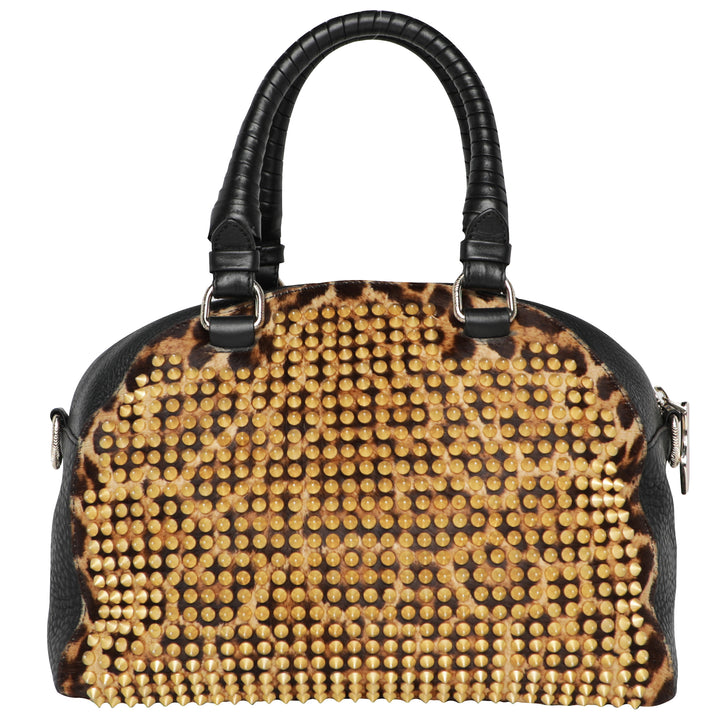 Y2K Christian Louboutin Pannetone Spike Leather Leopard Bowler Bag w/ Crossbody Strap