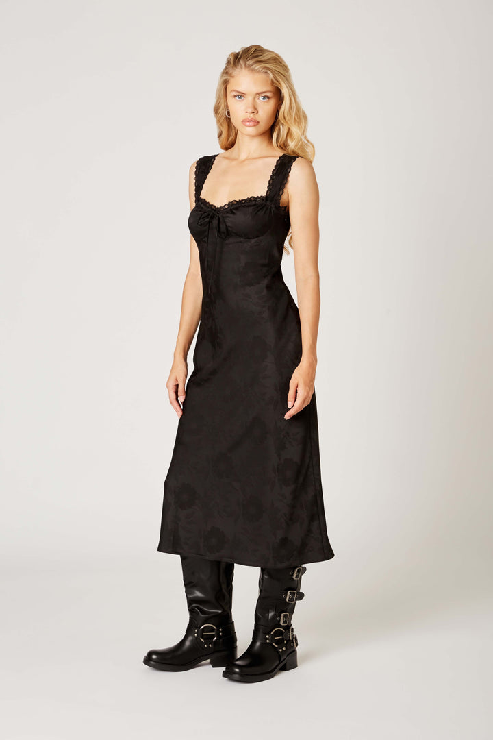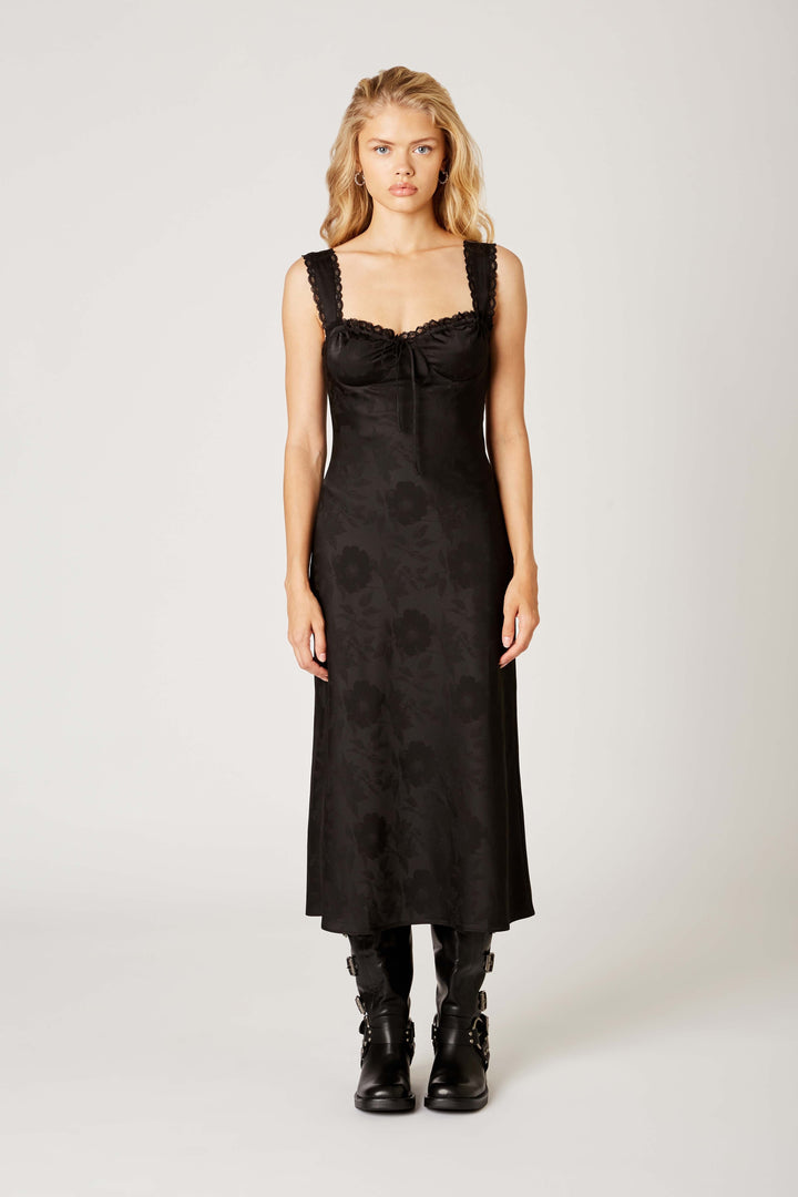 DARCY SATIN JACQUARD FLORAL SWEETHEART BUSTIER MIDI SLIP DRESS