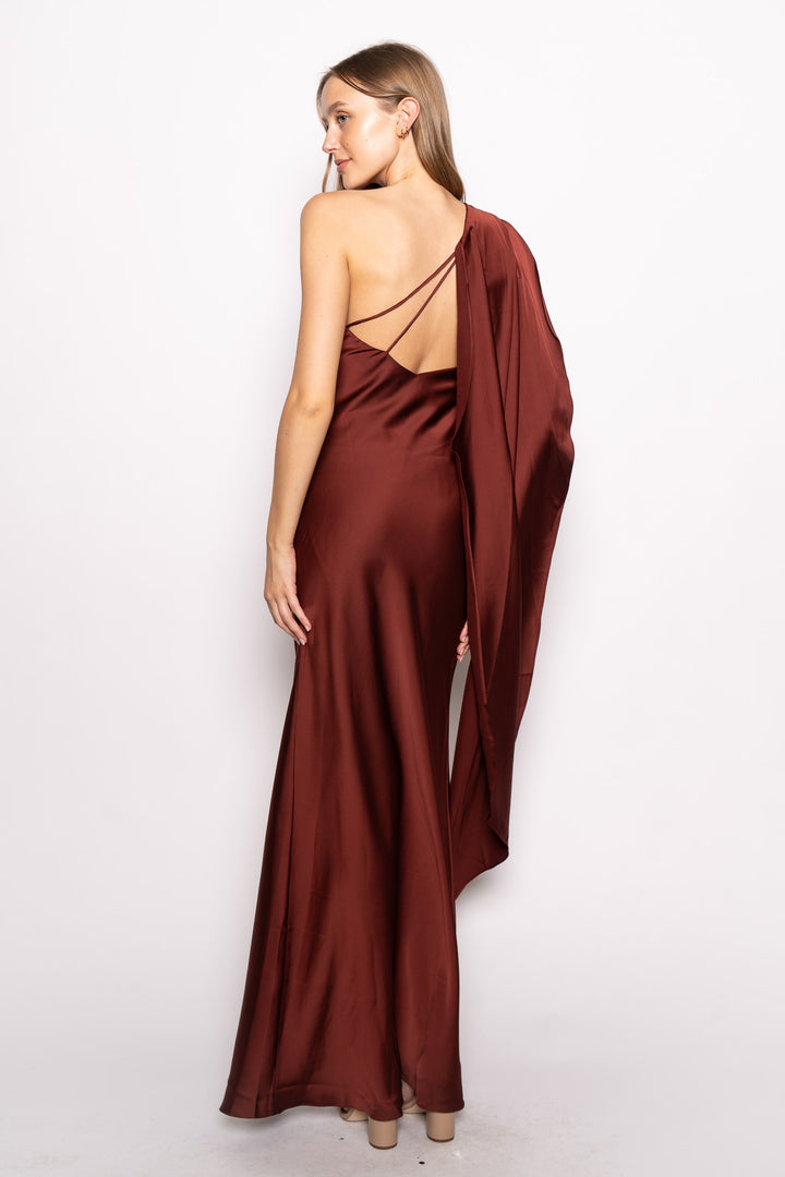 Diandra Asymmetric Halter Drape Scarf Slit Maxi Dress