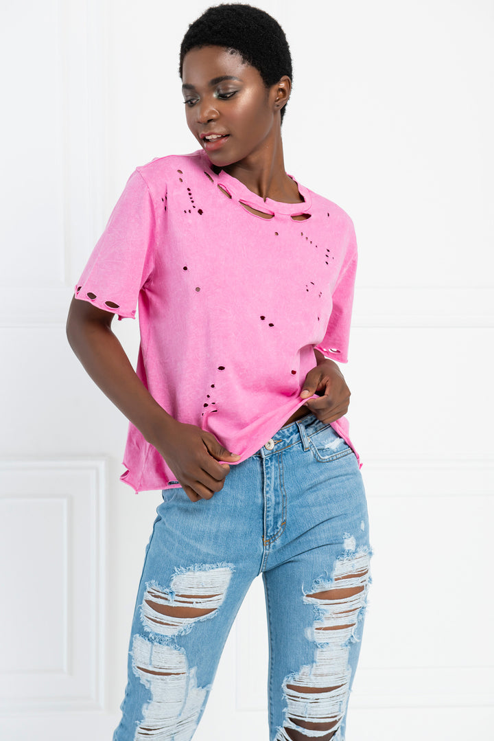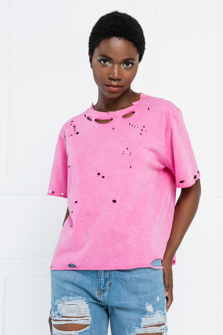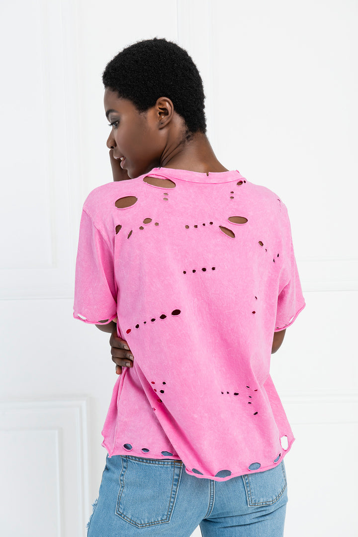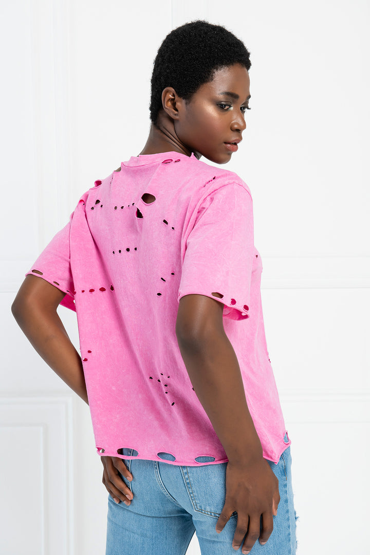 Distressed Pastel Acid Wash Boyfriend T-Shirt - Pink