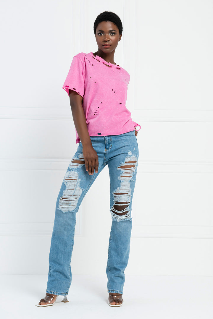 Best selling oversized girlfriend t shirt destroyed and distressed to perfection. Classic crew neck, loose fitting.