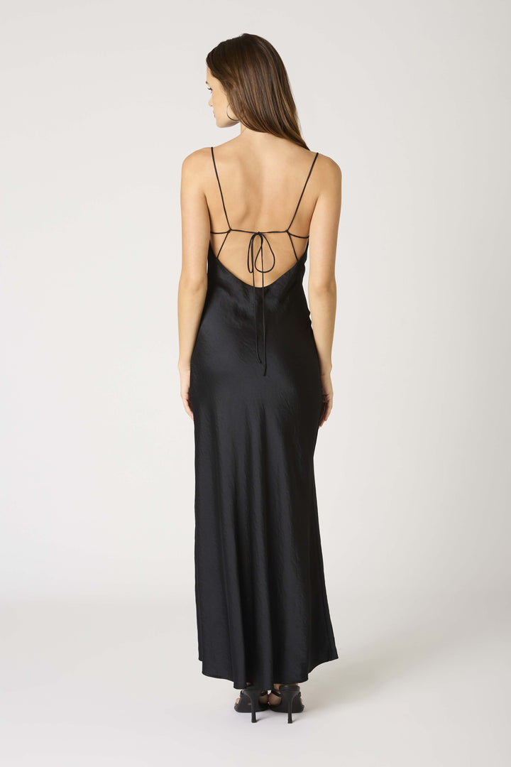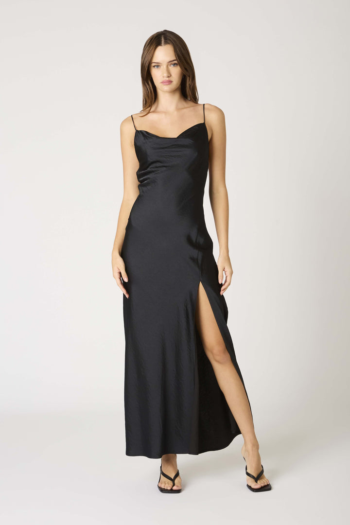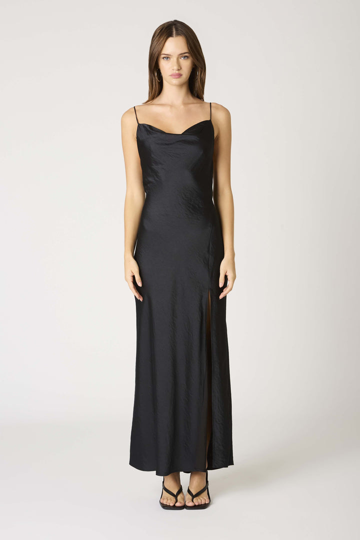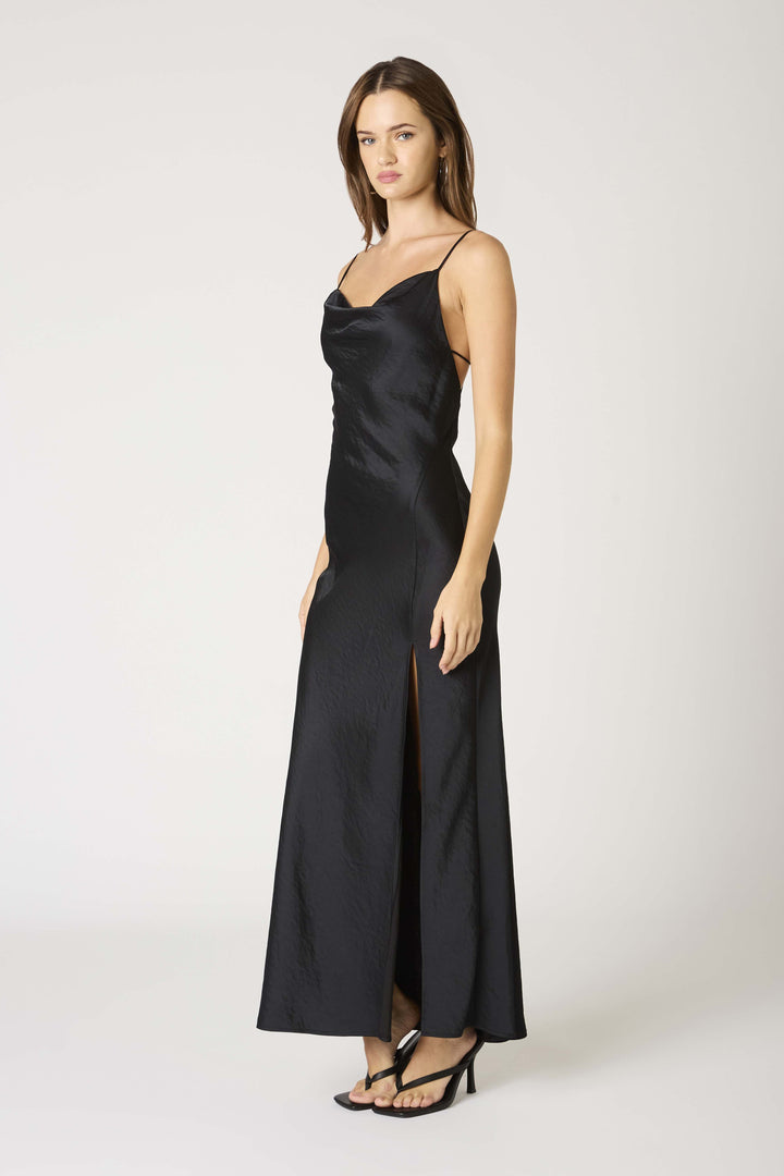 Elodie Cowl Satin Slip Maxi Dress Formal Gown - Black