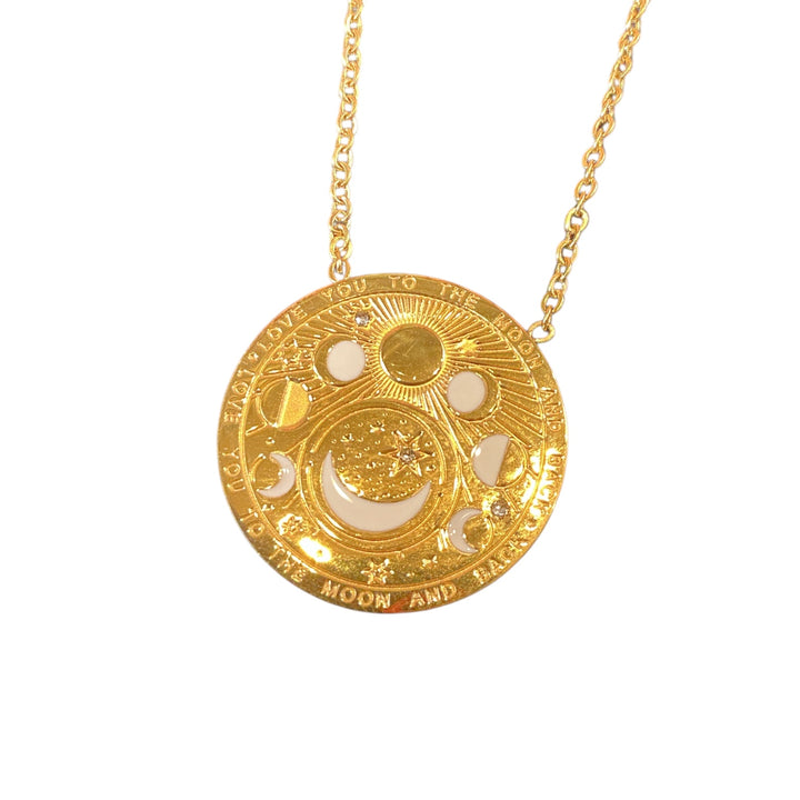 Faces of the Moon Love you to the Moon and Back Circular Pendant Chain