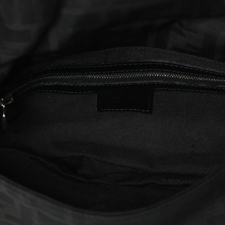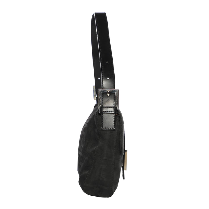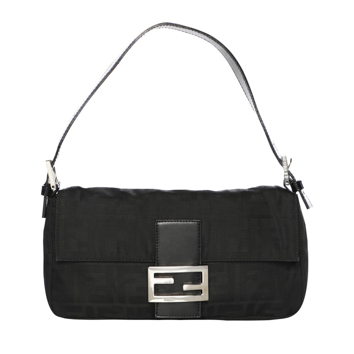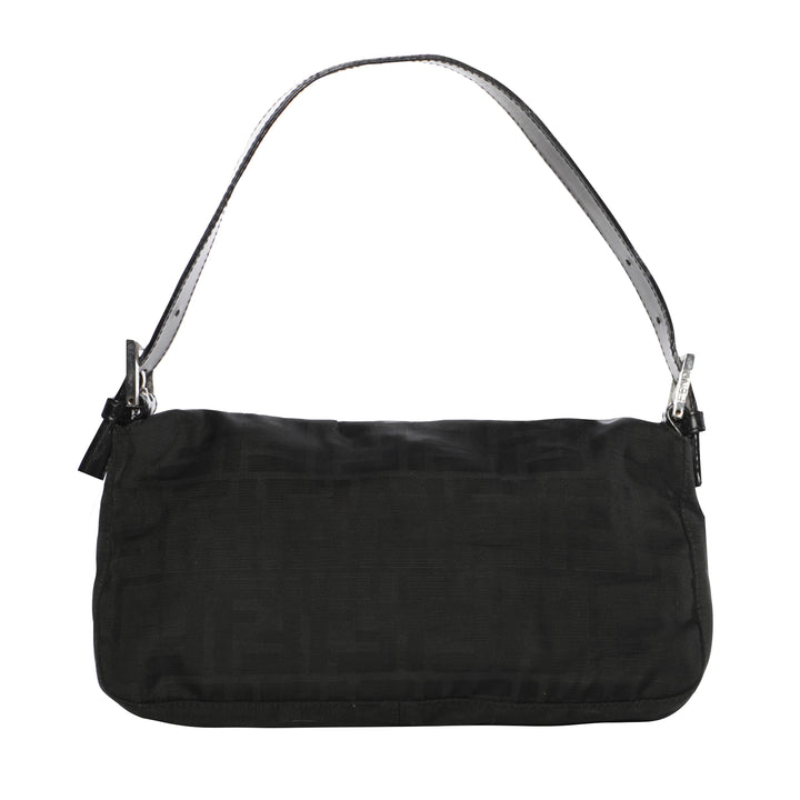 Fendi Monogram Logo Baguette Nylon Shoulder Bag - Black