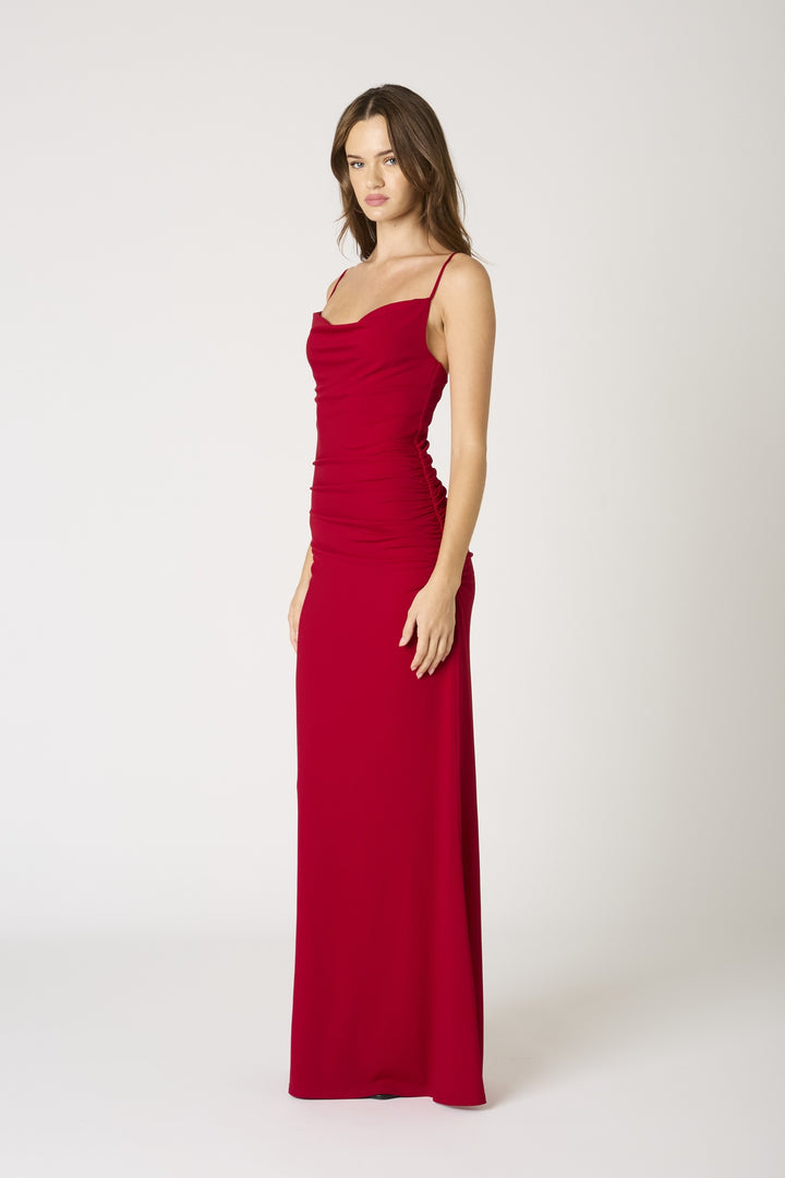 MALENA COWL RUCHED SIDE STRAPPY MAXI DRESS