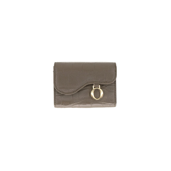 Saddle Genuine Leather Zip Wallet Card Holder - Grey