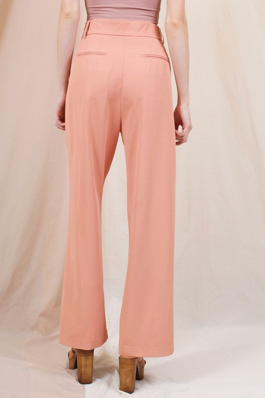 Tracy Hi Waisted Pleated Crepe Trousers - Peach Fuzz