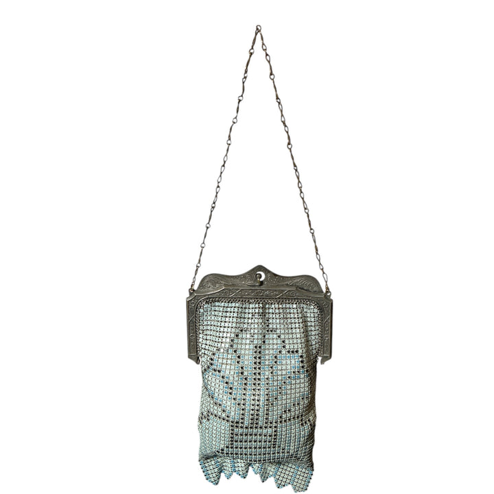 Vintage 1920s Art Deco Enamel Painted Design Mini Metal Mesh Handbag Purse Pouch