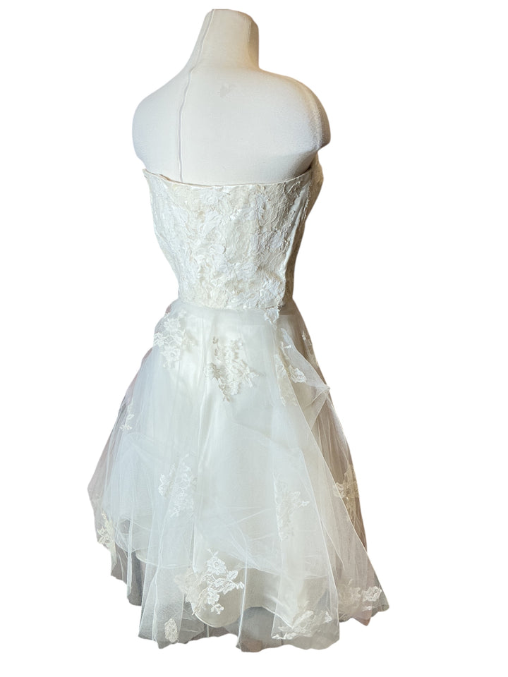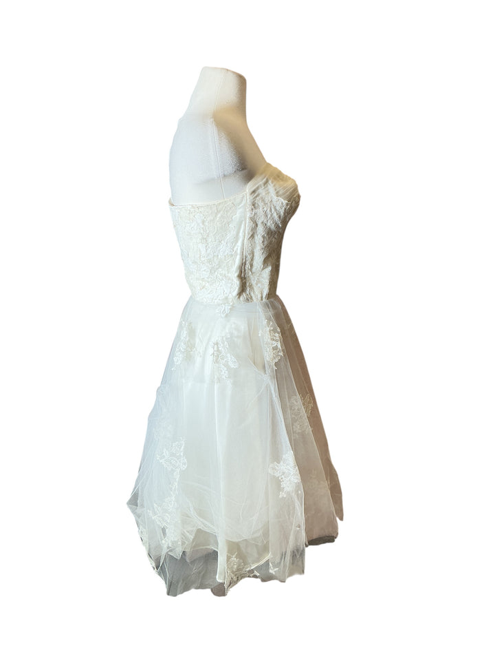 Vintage 1950s mesh tulle strapless birdal new look prom party a line dress XS