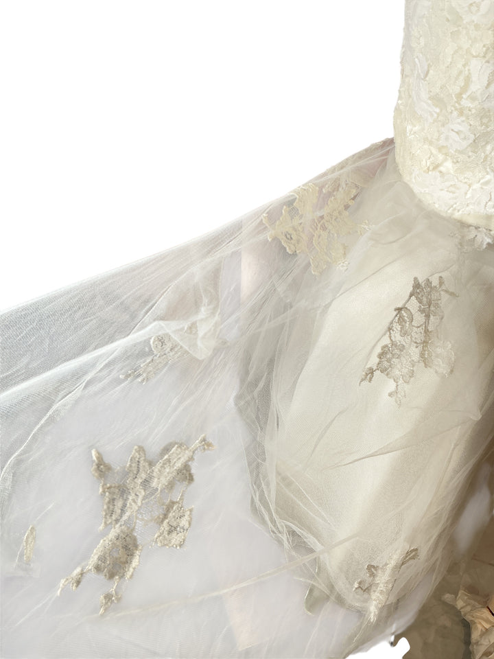 Vintage 1950s mesh tulle strapless bridal new look prom party a line dress XS