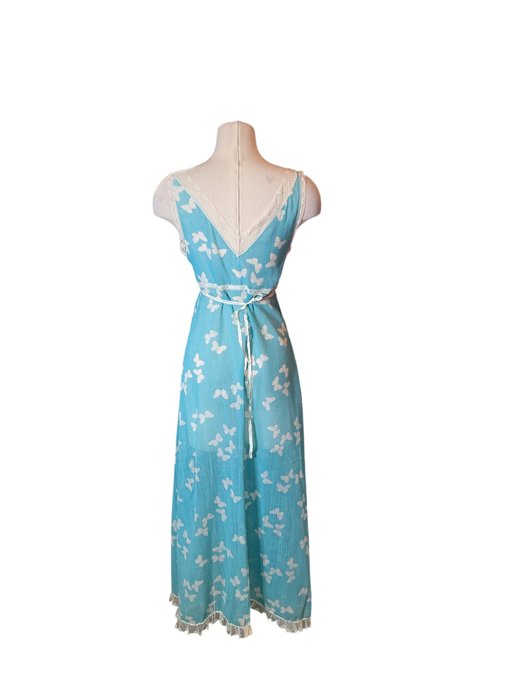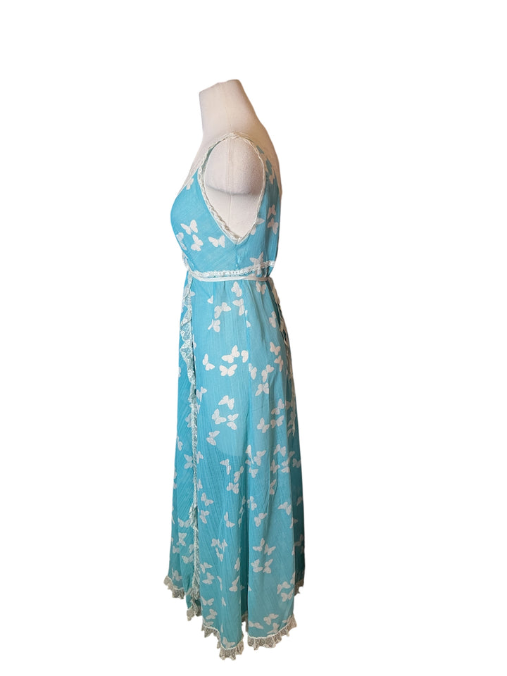 Vintage 1960s butterfly print wrap maxi cotton summer dress S