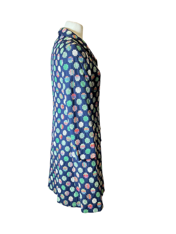 Vintage 1960s embroidered geometric circles print single breasted lightweight jacket S