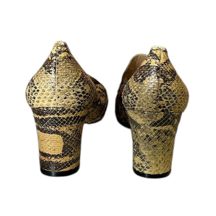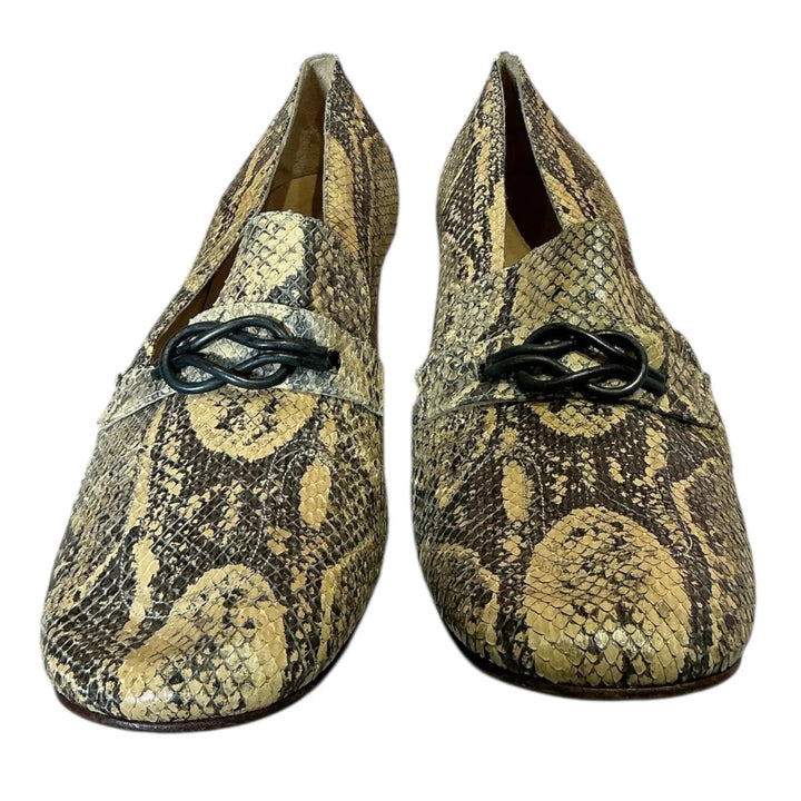 Vintage 1960s Python Brogue Loafer Low Block Heel Pumps