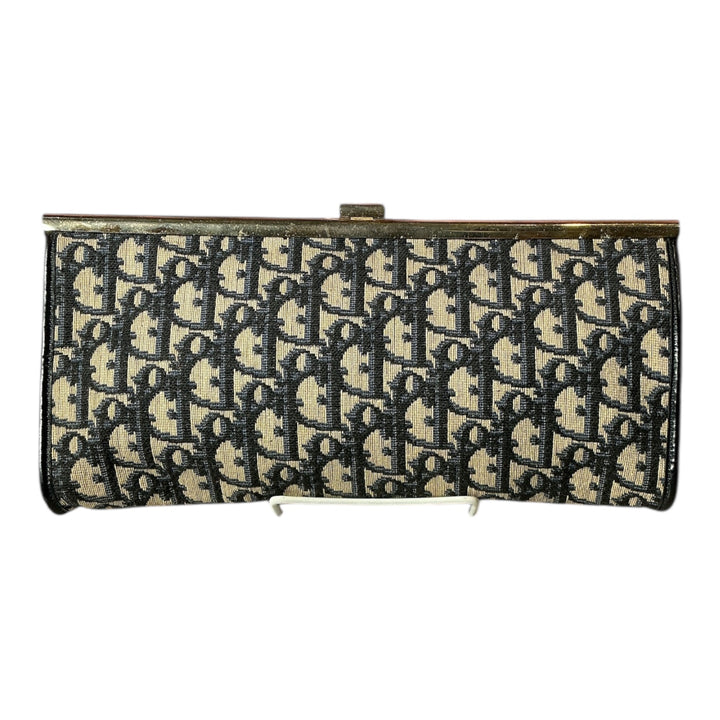 Vintage 1970s Christian Dior Frame Kisslock Trotter Monogram Canvas Leather Clutch