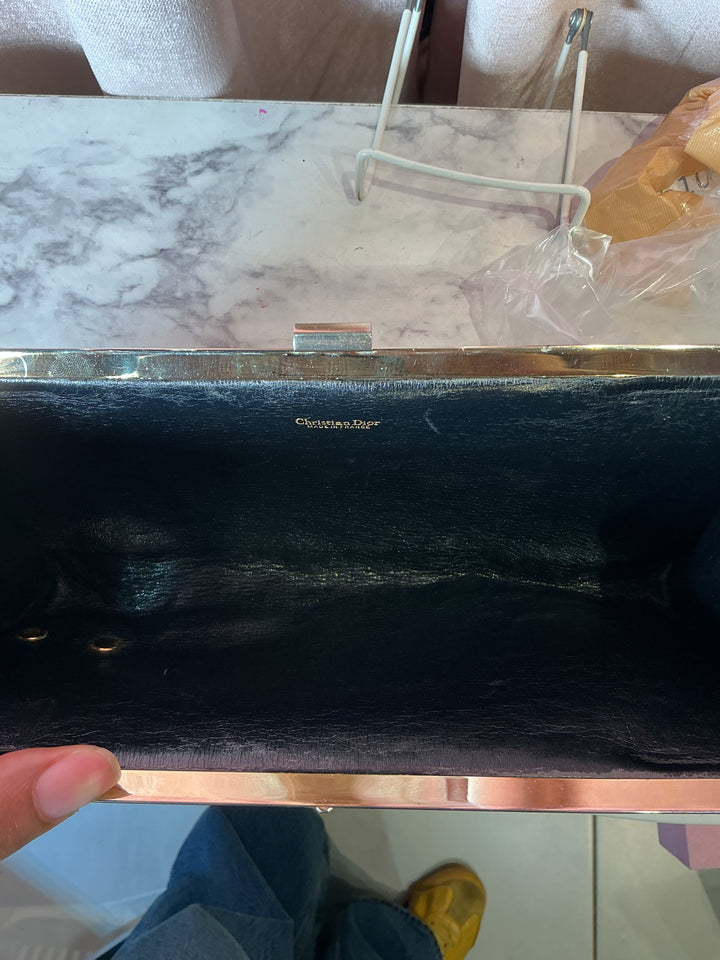 Vintage 1970s Christian Dior Frame Kisslock Trotter Monogram Canvas Leather Clutch. Interior is all leather.