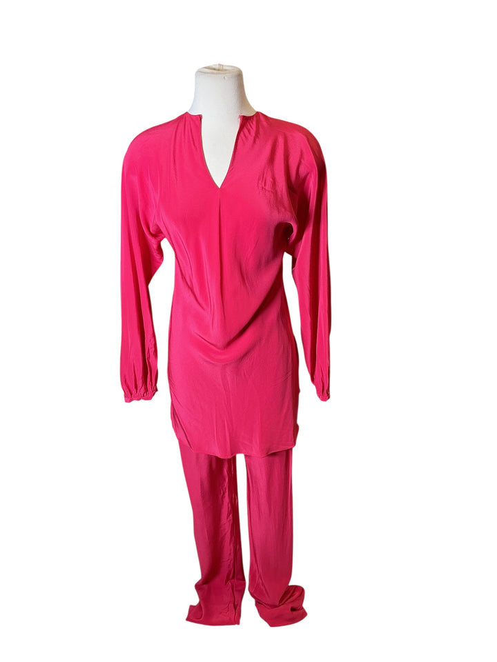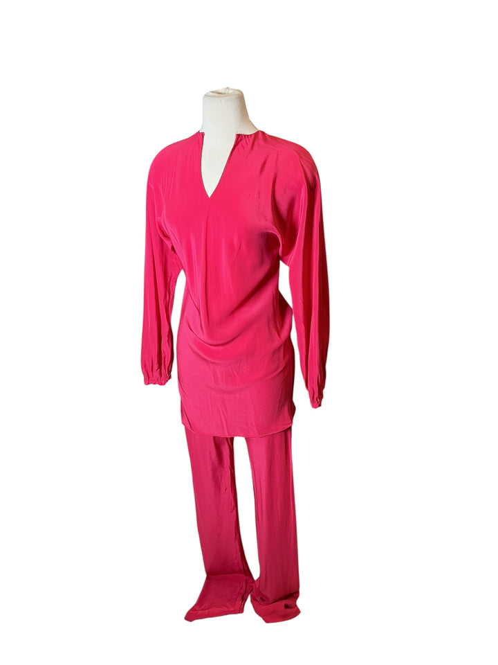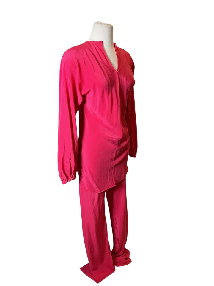 Vintage 1970s Halston silk two piece tunic blouse and pants matching coordinating set S