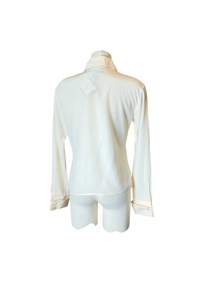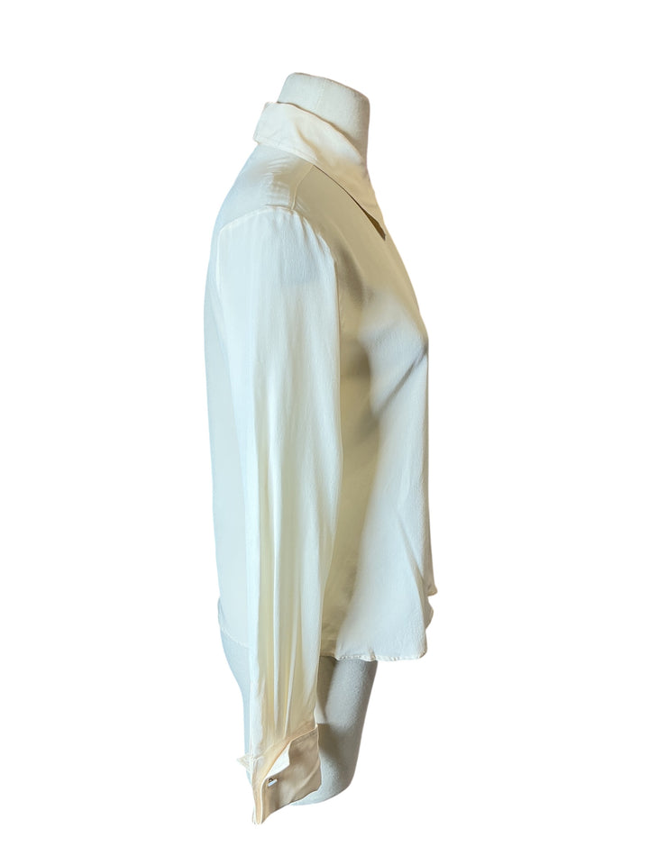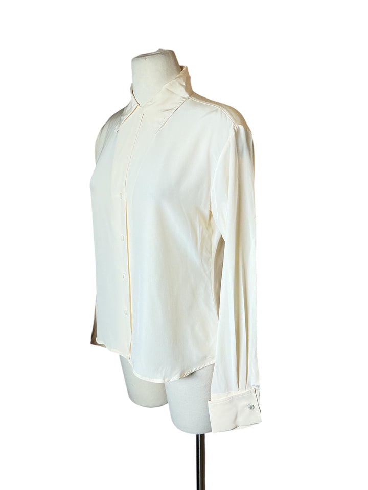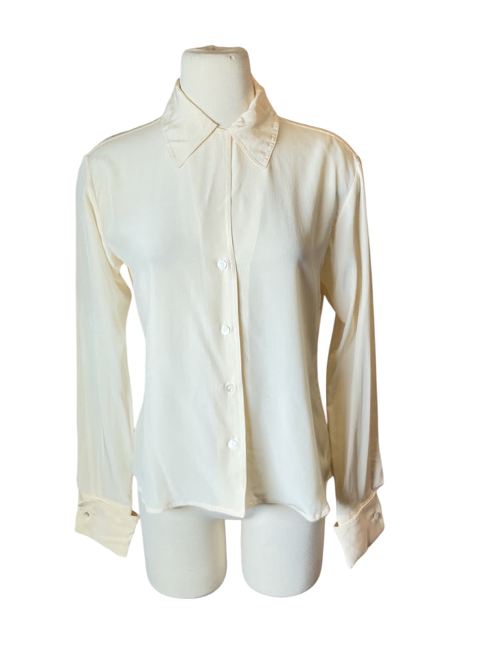 Vintage 1990s Ralph Lauren silk crepe collared cream button down blouse S