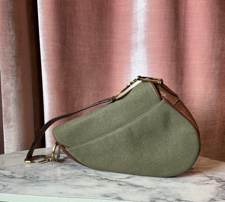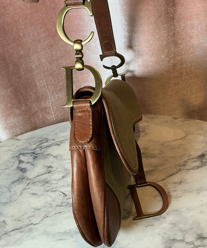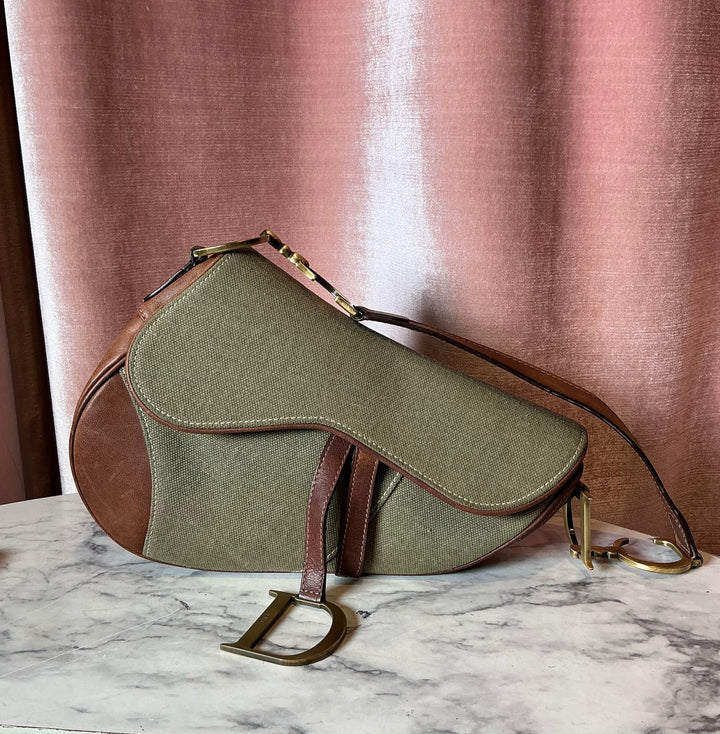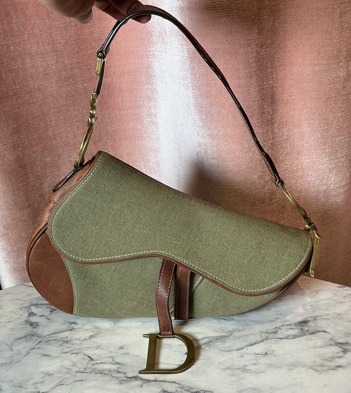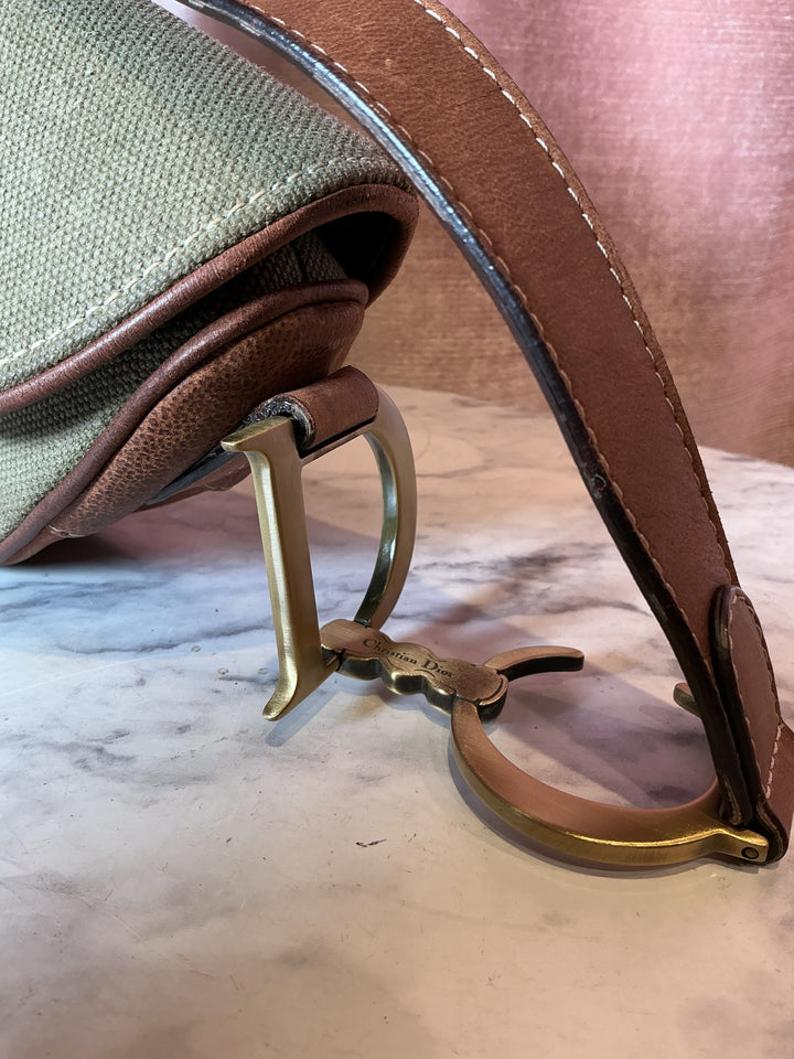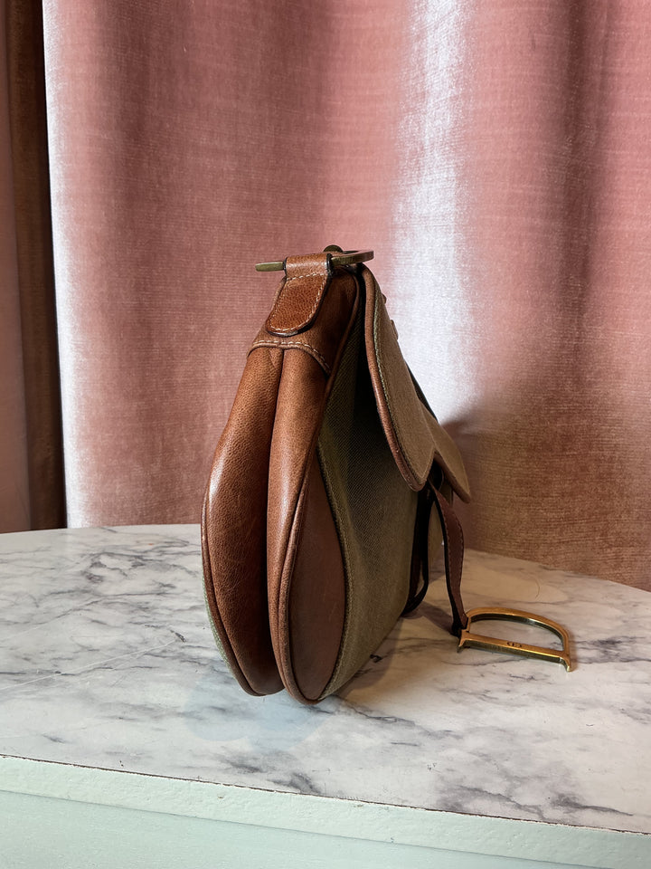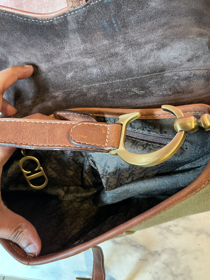 Vintage 2000s Christian Dior Canvas leather saddle shoulder bag