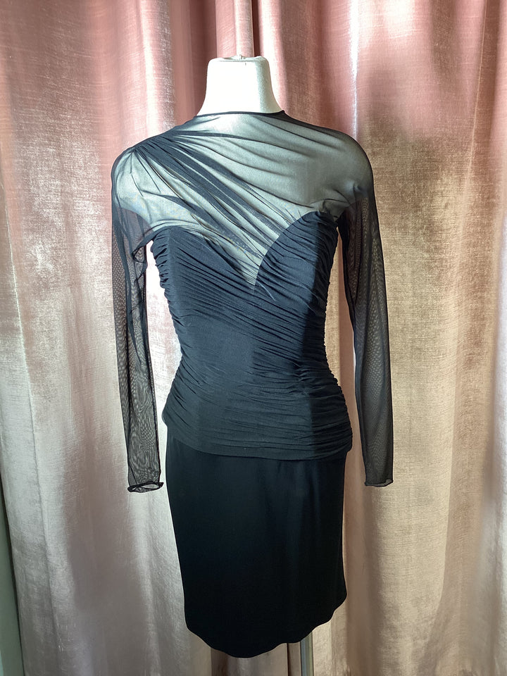 Vintage 80’s Vicky Tiel Mesh Ruched Dress Size S