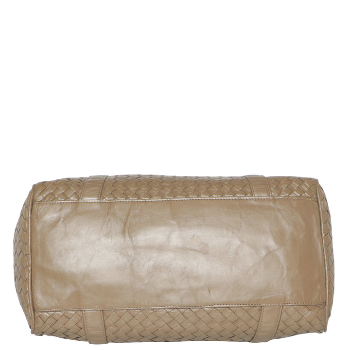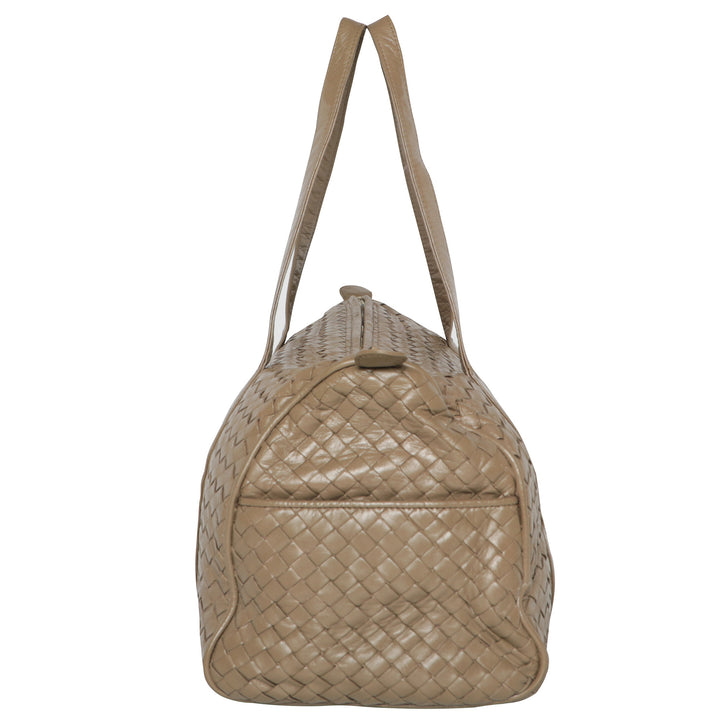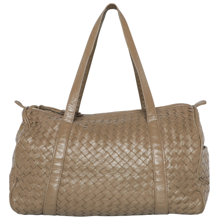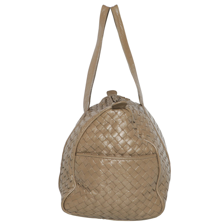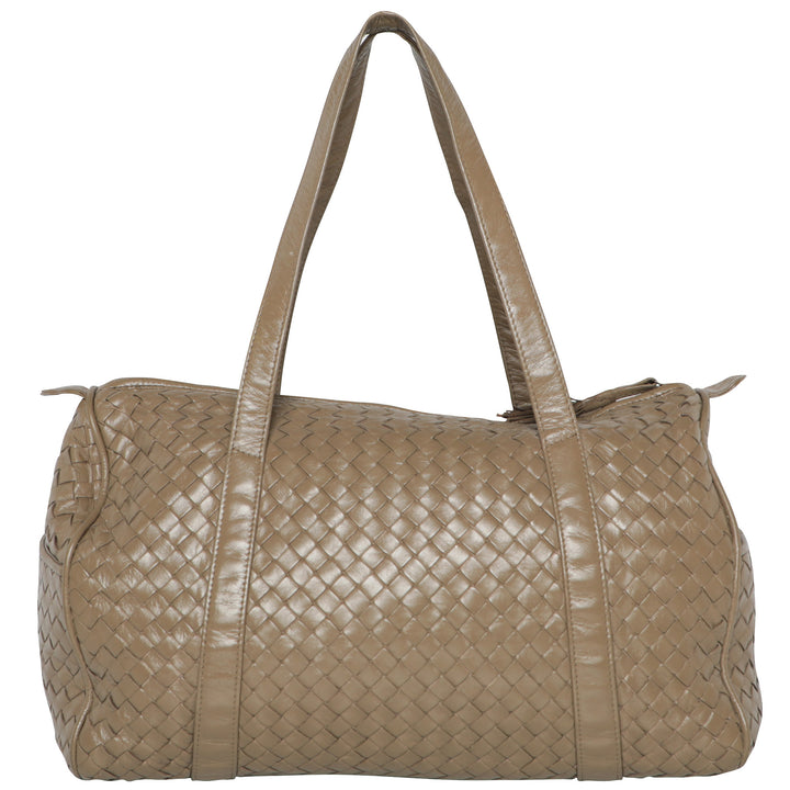 Vintage 80s Bottega Veneta Leather Woven Intrecciato Shoulder Duffel Bag