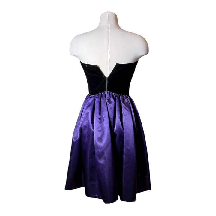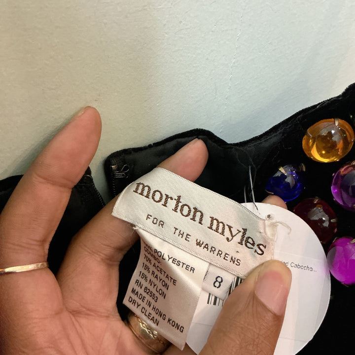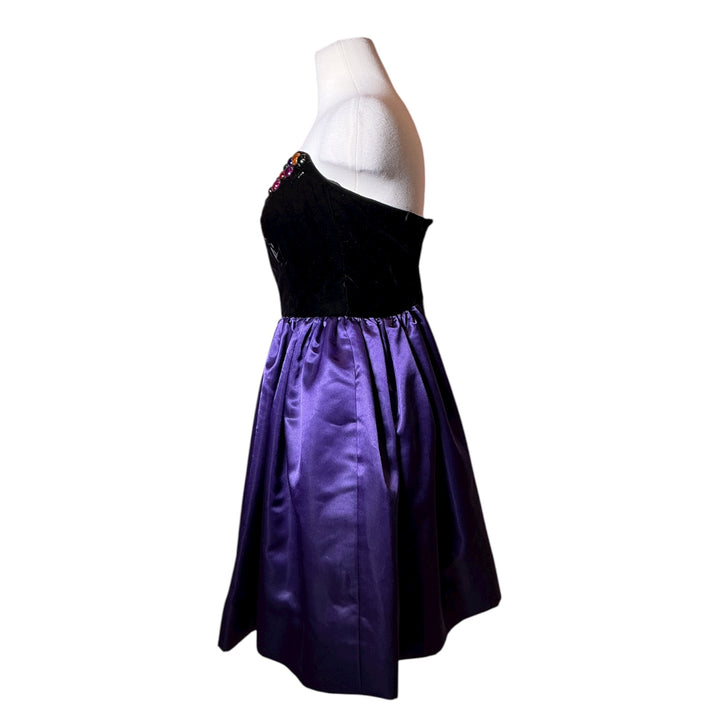 Vintage 80's Morton Myles Beaded Cabochon Duchess Satin Velvet Tea Length Strapless Party Dress