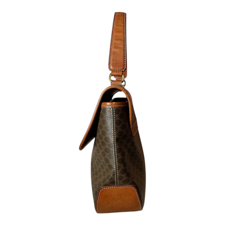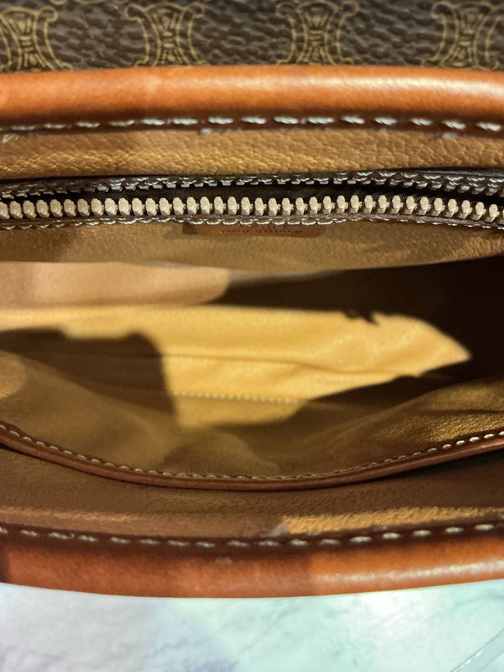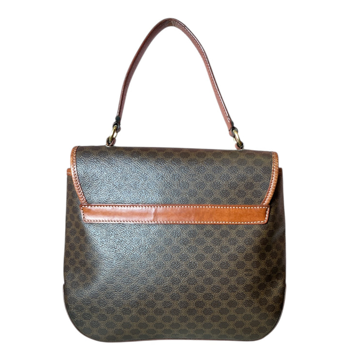 Vintage 90s Celine Triomphe Macadam Coated Canvas Leather Top Handle Flap Handbag