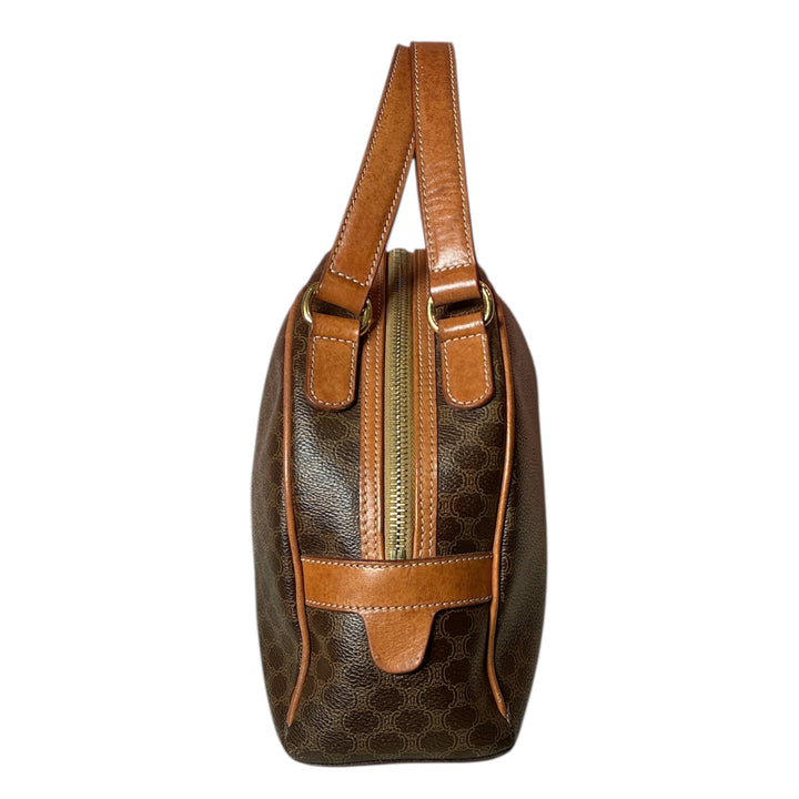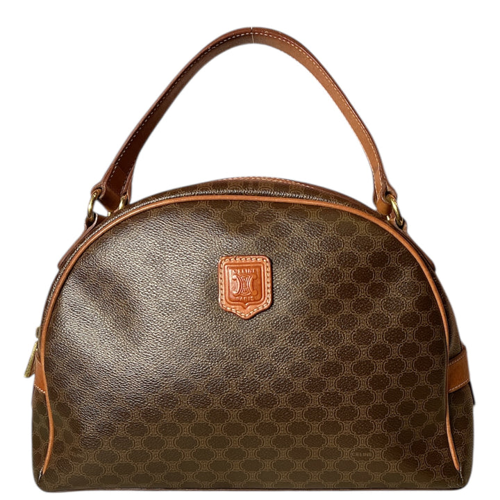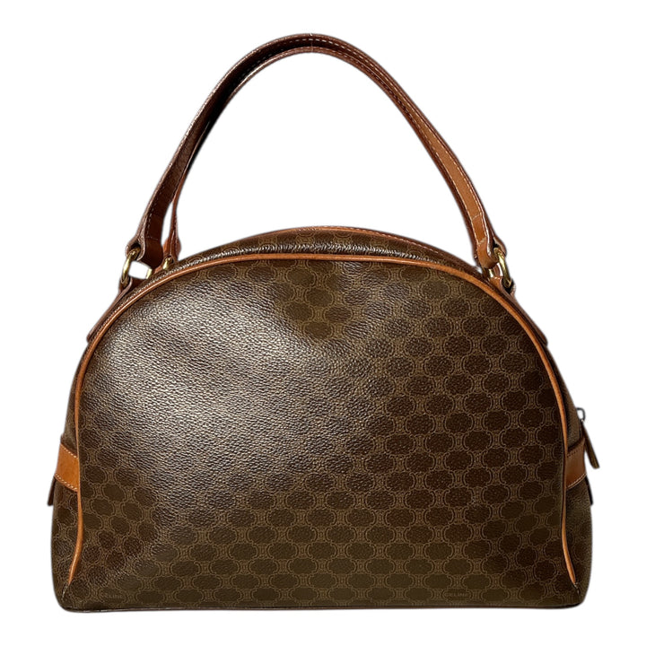 Vintage 90s Celine Triomphe Macadam Coated Canvas Leather Top Handle Mini Dome Bag