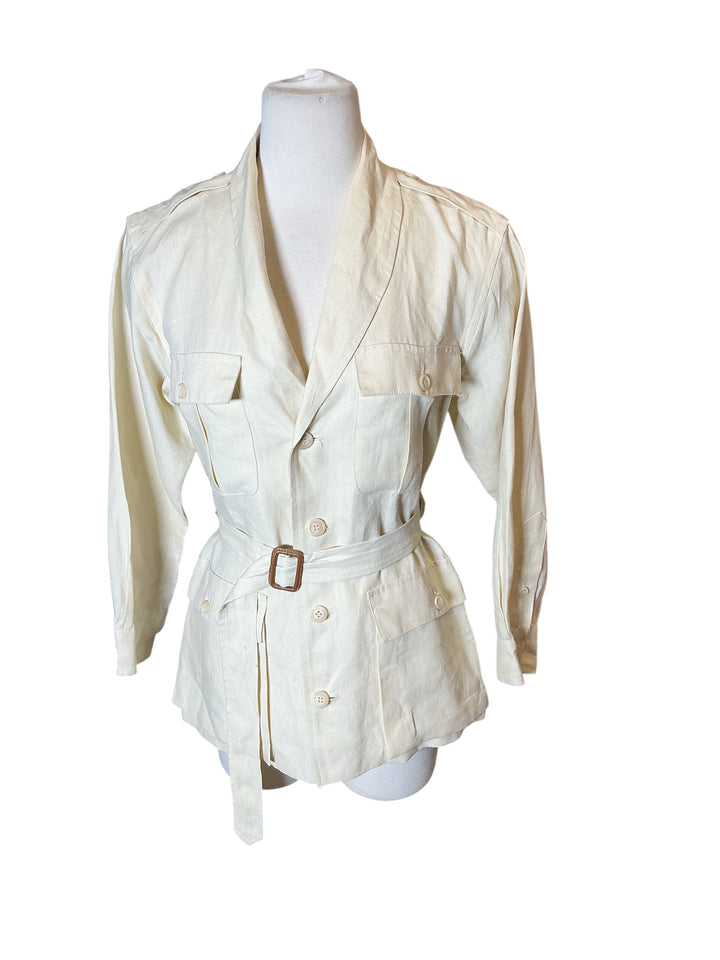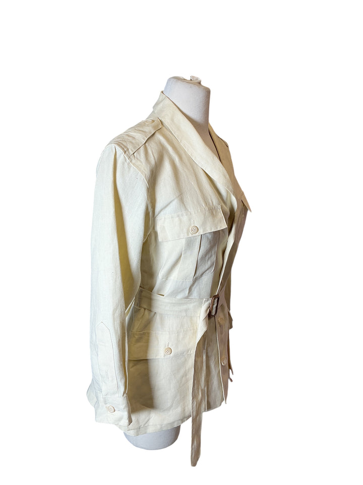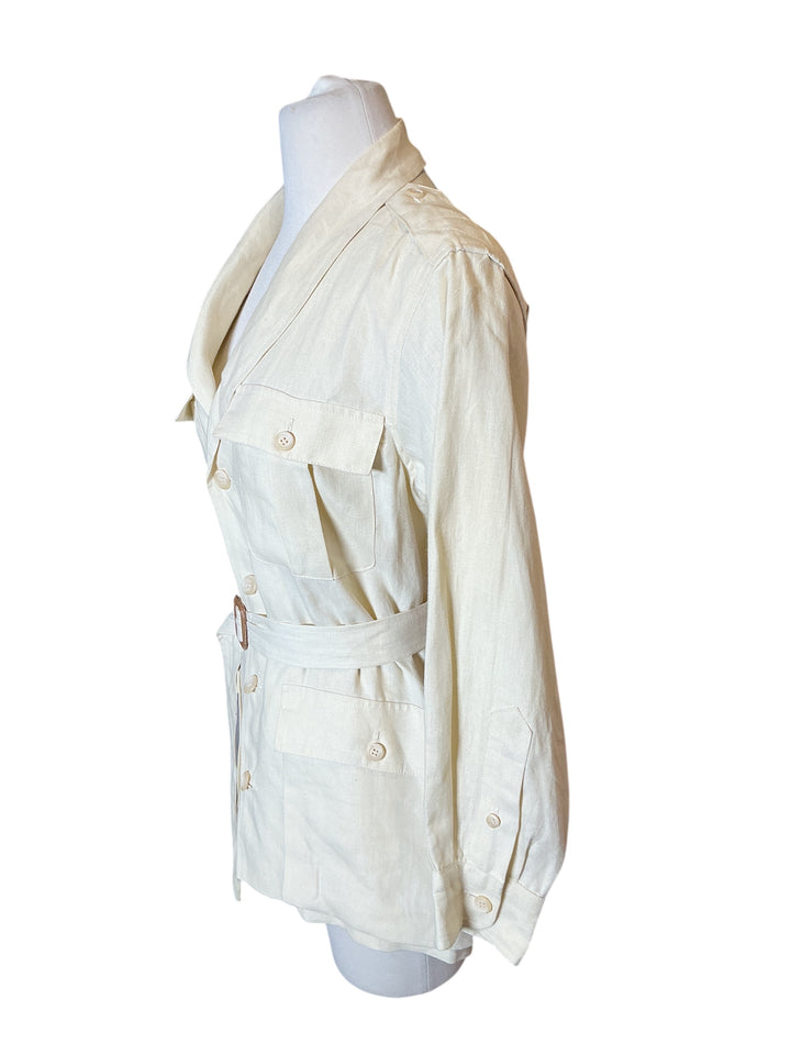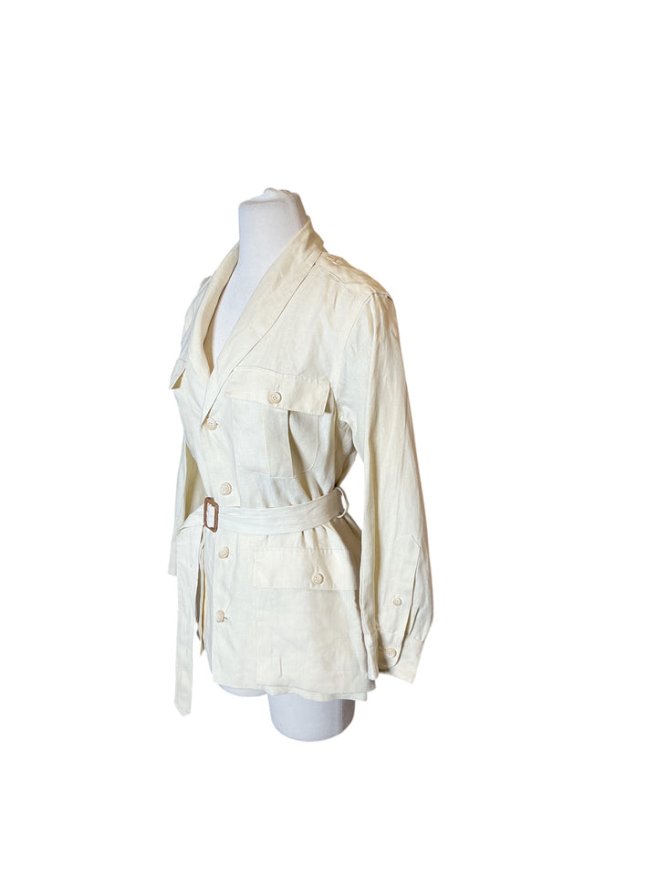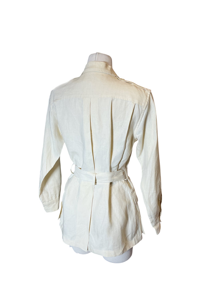 Vintage 90s Ralph Lauren cream safari linen belted shirt jacket S