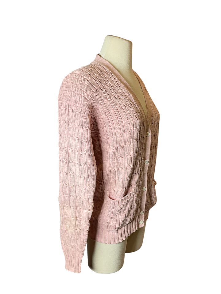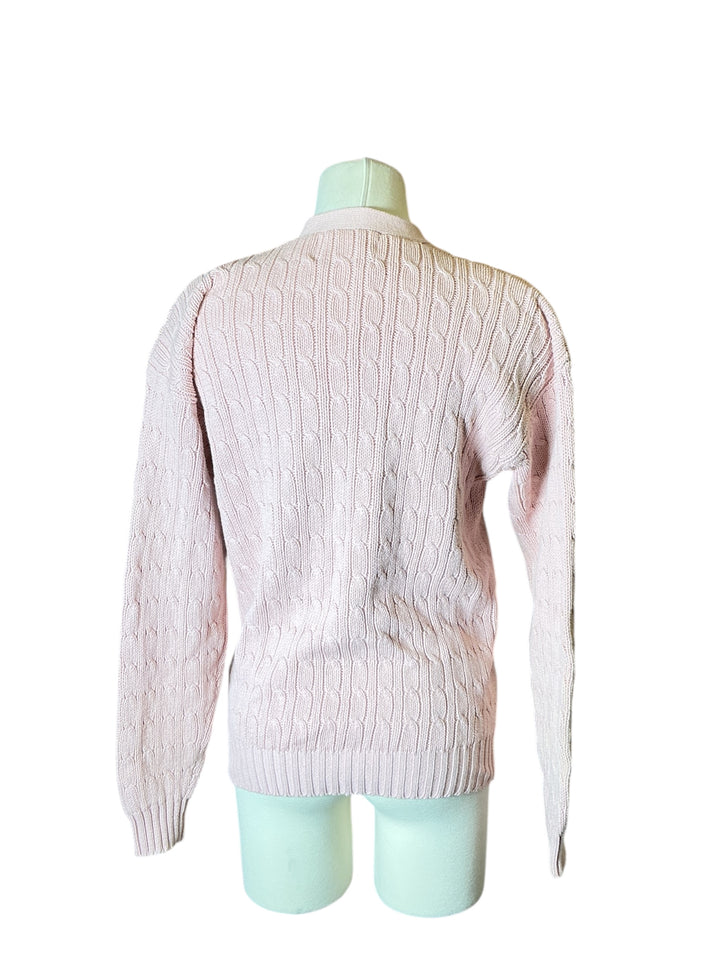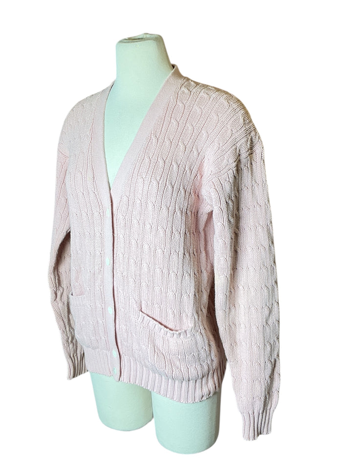 Vintage 90s Ralph Lauren varsity cable knit sweater button down v neck pink cardigan M