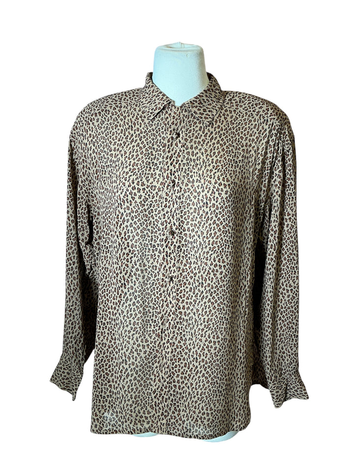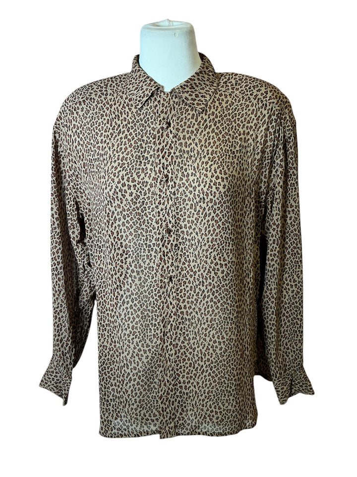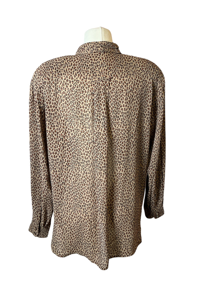 Vintage Anne Pinkerton Leopard Print Blouse - Button Down Long Sleeve Shirt S
