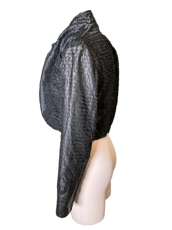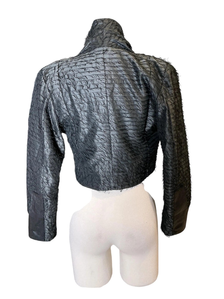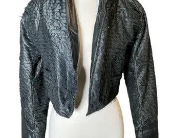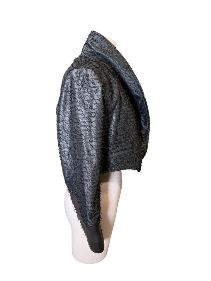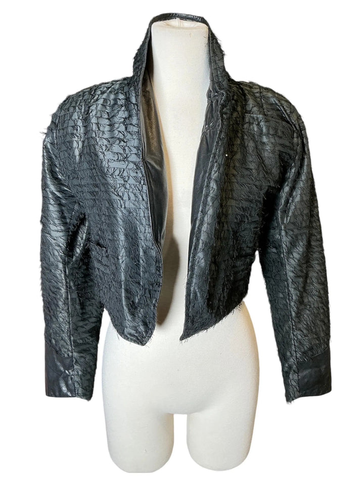 Vintage Black Textured Cropped Bolero Unique Shag Faux Leather jacket