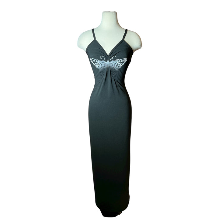 Vintage DNY Velvet Butterfly Stretch Bodycon Maxi Dress