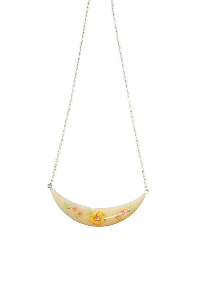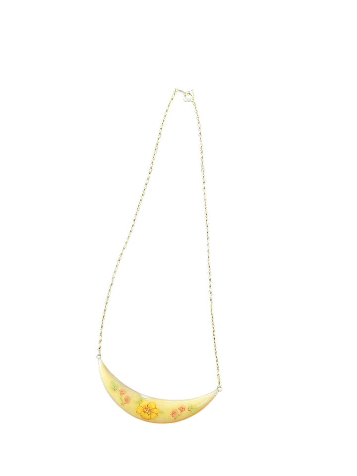 Vintage Floral Crescent Moon Hand-Painted Botanical Unique Gold Chain necklace