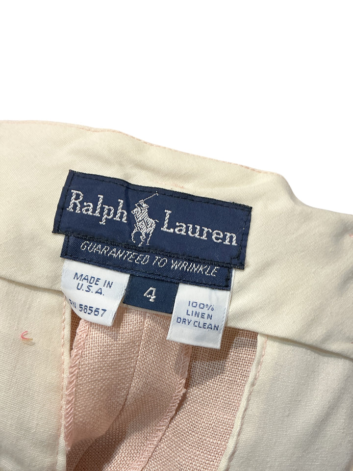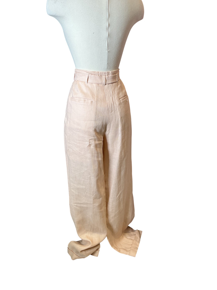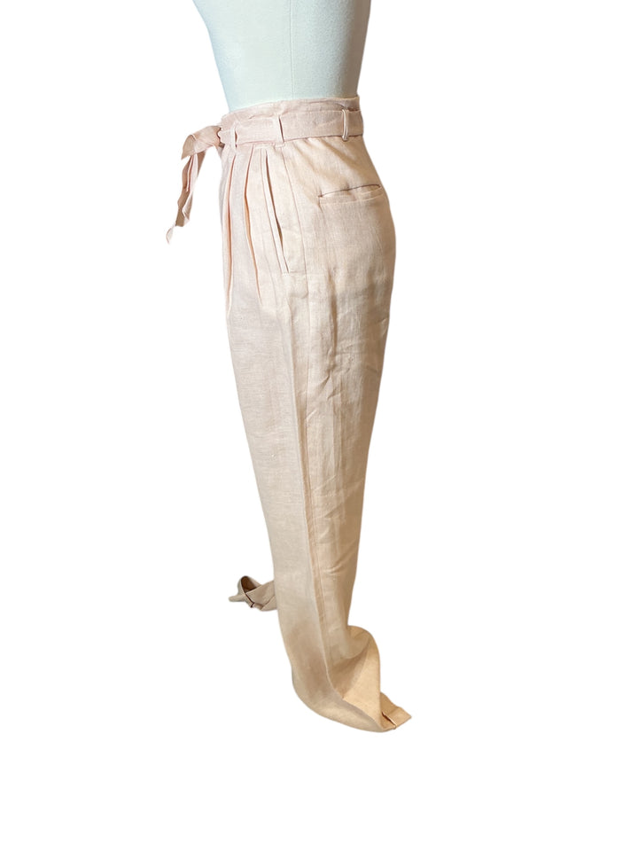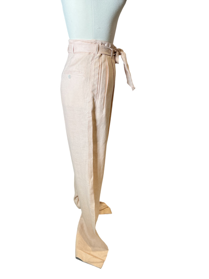 Vintage Ralph Lauren Blush Pink Linen Wide Leg paperbag waist trouser cream pants Flowy trousers S