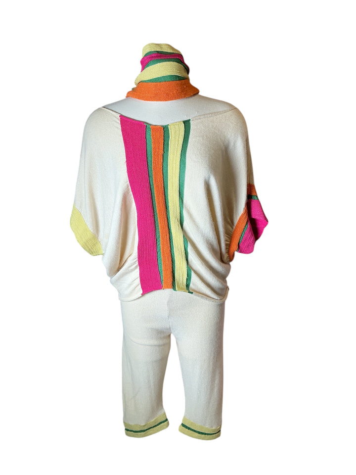Vintage Vibrant Striped Laure Biagiotti Style Loungewear Set - 3 Pc Knit set
