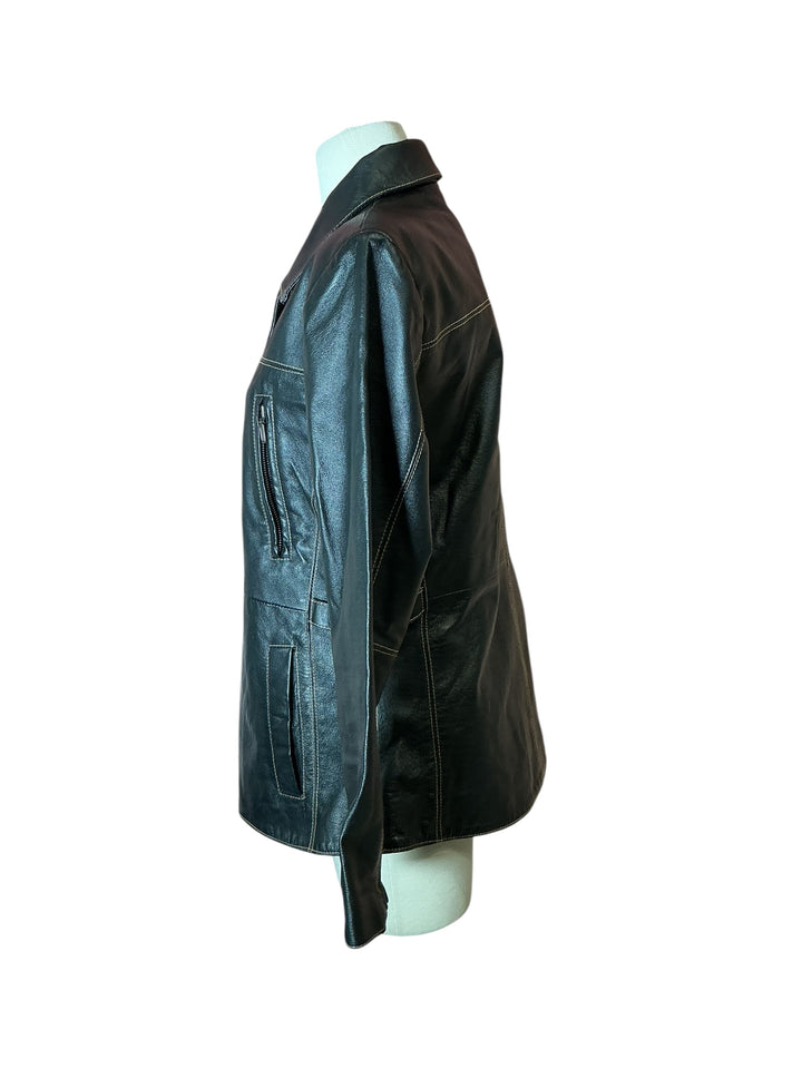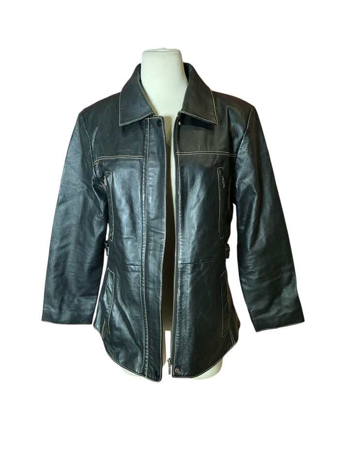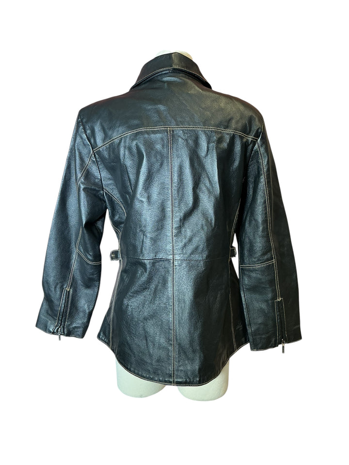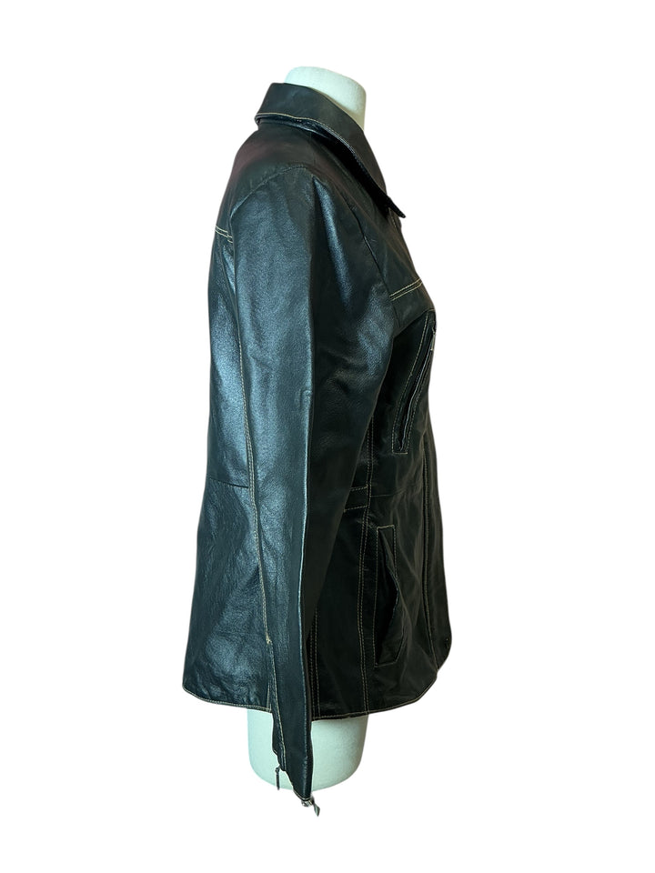 Vintage Y2K 90s Cruze Genuine Leather Zip Up Cinch Waist Collared Fitted Jacket S/M