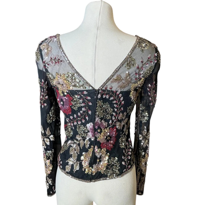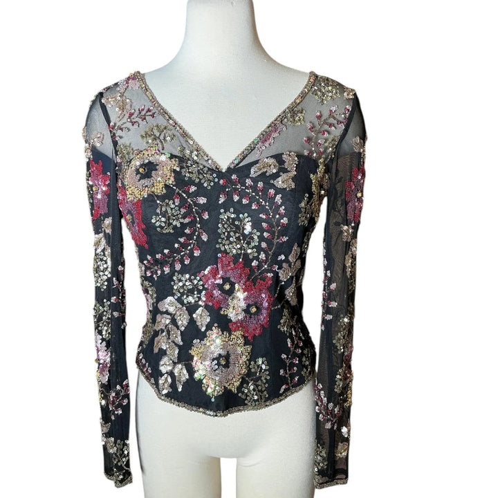 Vintage Y2K Alberto Makali Sequin Beaded Mesh Nylon Top