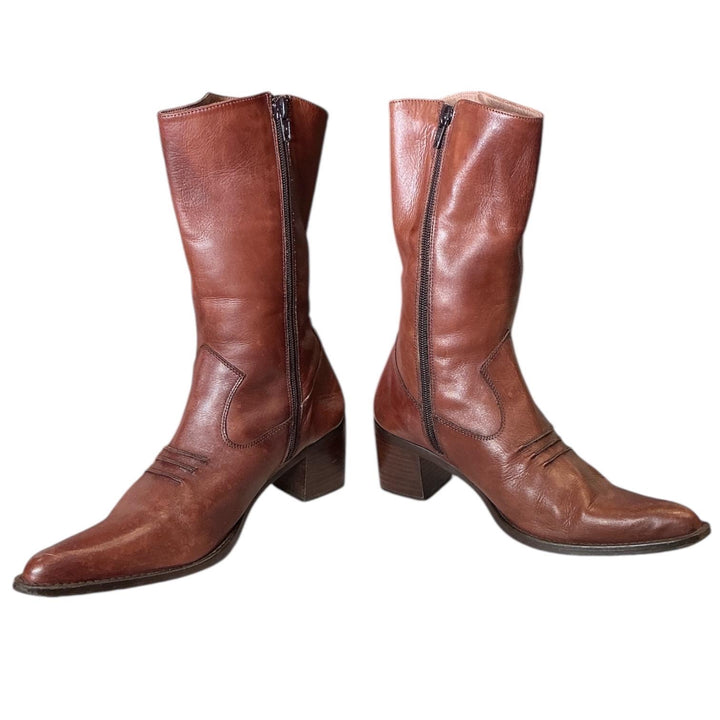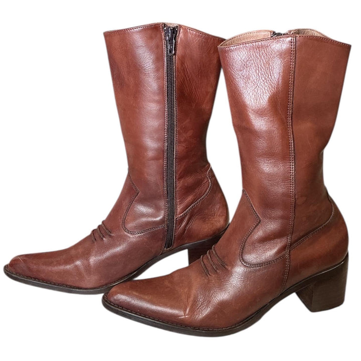 Vintage Y2K Block Heel Western Rodeo Leather Cowgirl Boots 7.5/8