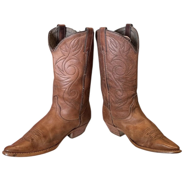 Vintage Y2K Brown Stitch Rodeo Leather Western Cowgirl Boots