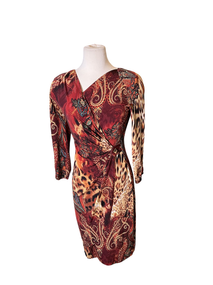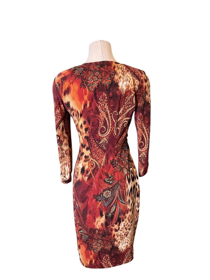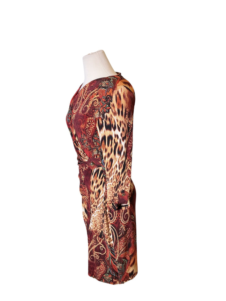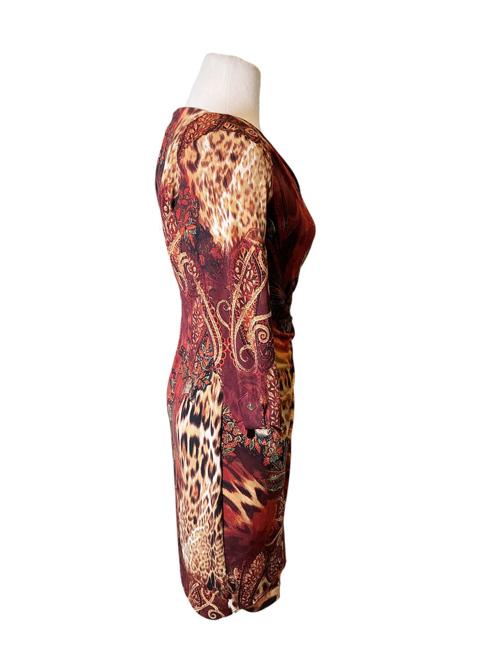 Vintage y2k Cache leopard mixed paisley ruched wrap surplice Body con dress medium