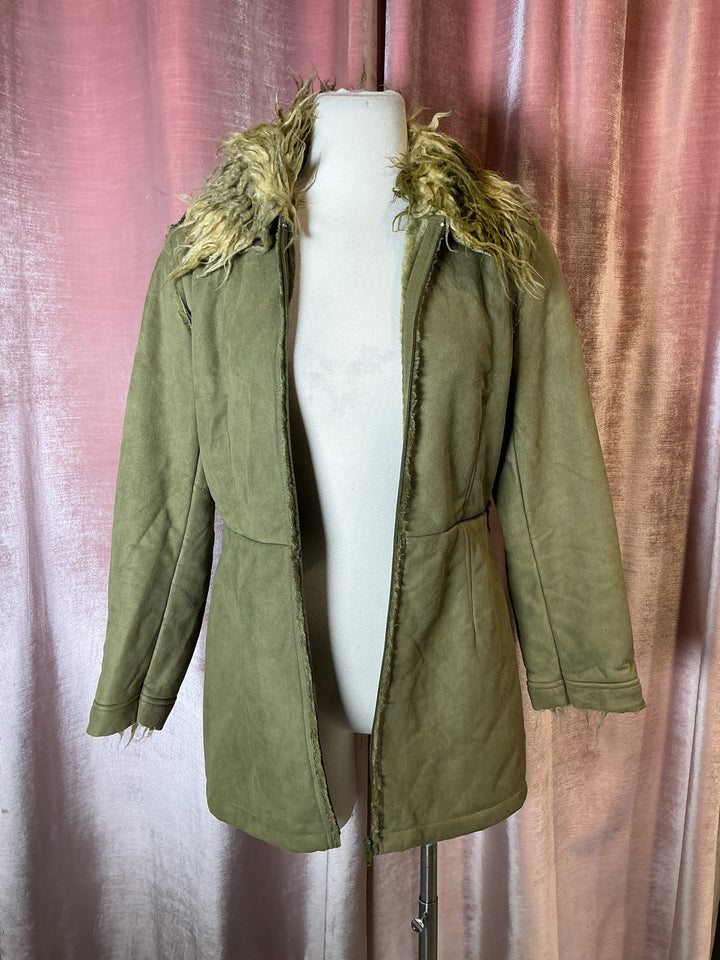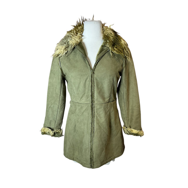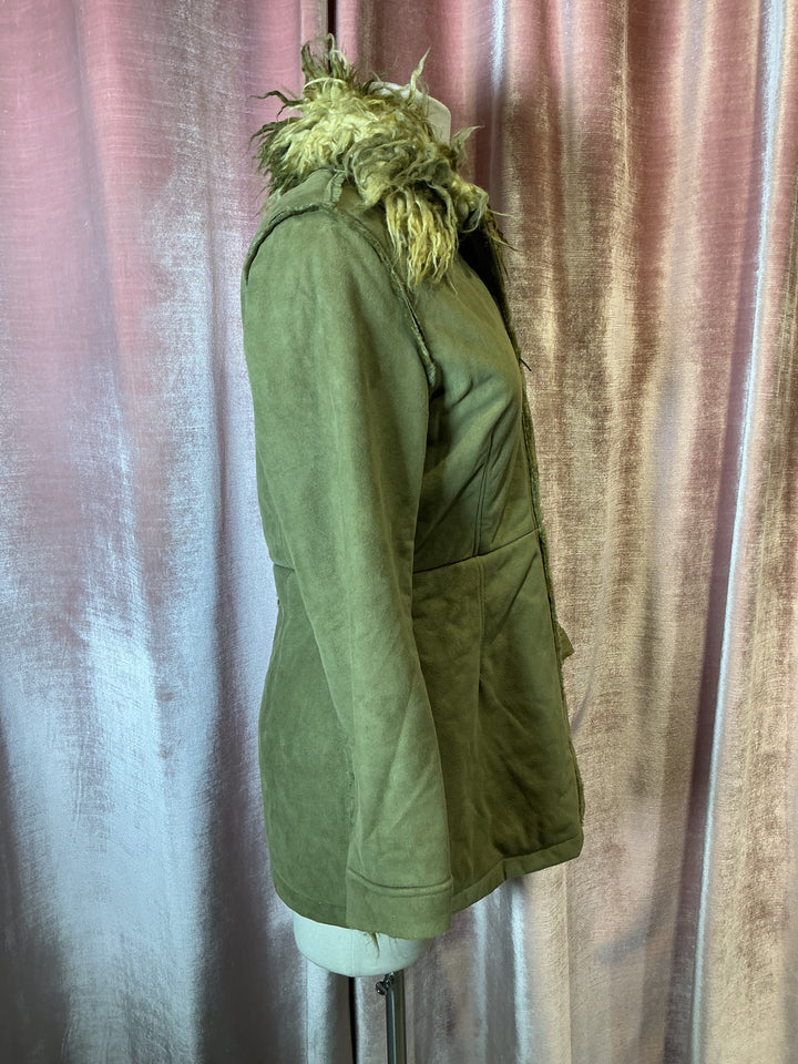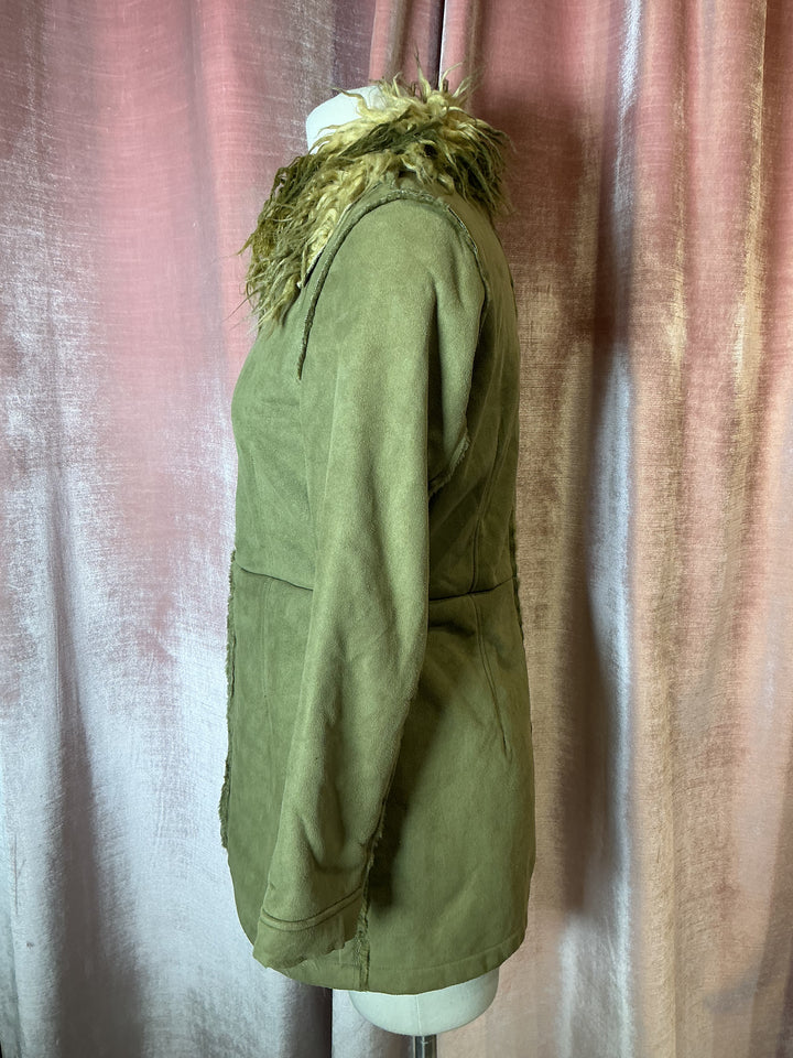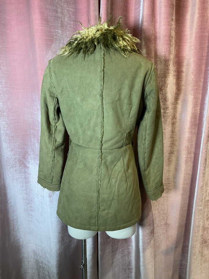 Vintage Y2K Charlotte Russe Faux Suede Afghan Boho Faux Shearling Fur Lined Jacket Coat