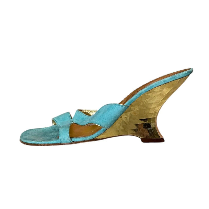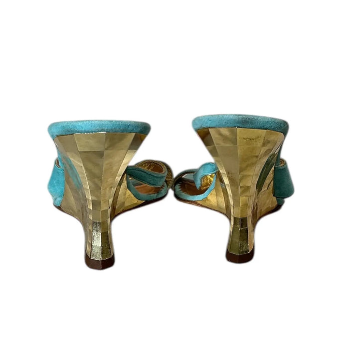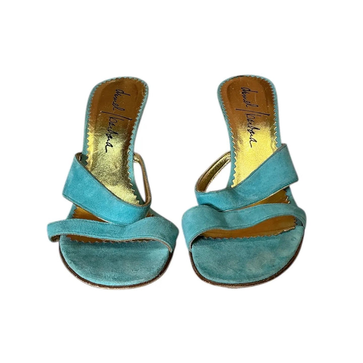 Vintage Y2K Daniel Barbara Turquoise Suede Block Heels
