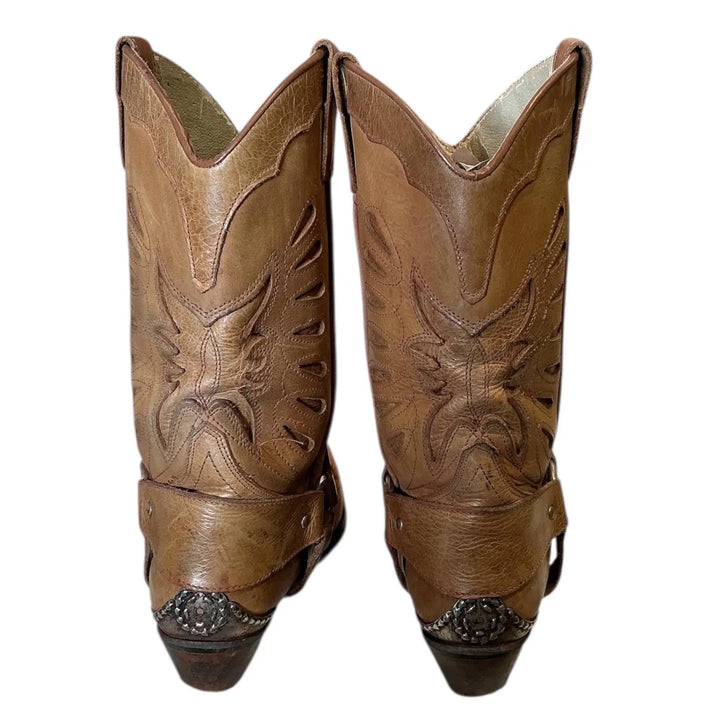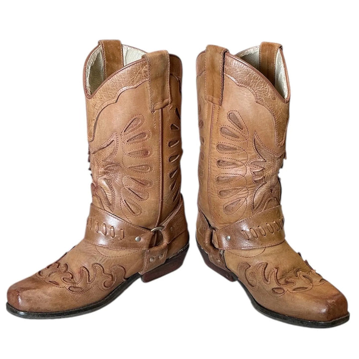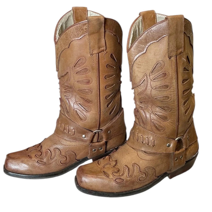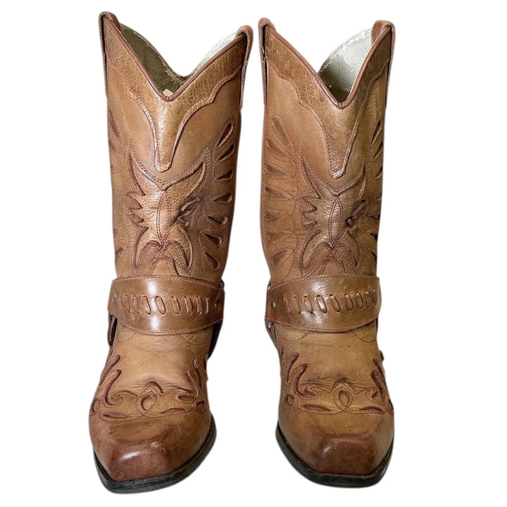 Vintage Y2K Embroider Buckle Rodeo Leather Cowgirl Boots